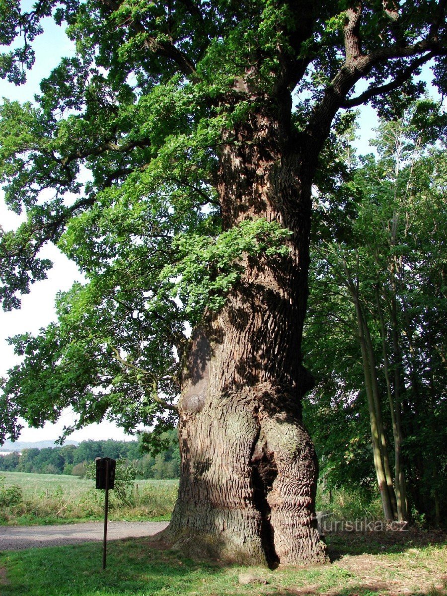 Nádherný, prý 900 let starý, dub najdete na Jesenicku u silnice z Petrohradu do Stebna. Pokud půjdete po ČTZ od Petrohradu, kolem zříceniny hradu Petršpurk, vyjdete z lesa přímo u něj. Určitě stojí za návštěvu.