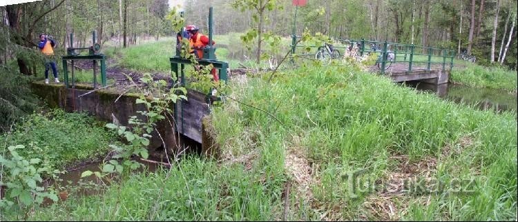 Most po kterém Zlatá stoka překonává níže položenou Podřezanskou stoku. Aby zařízení nebylo až tak jednoduché, jsou zde ještě uzavírací a přepouštěcí stavidla.