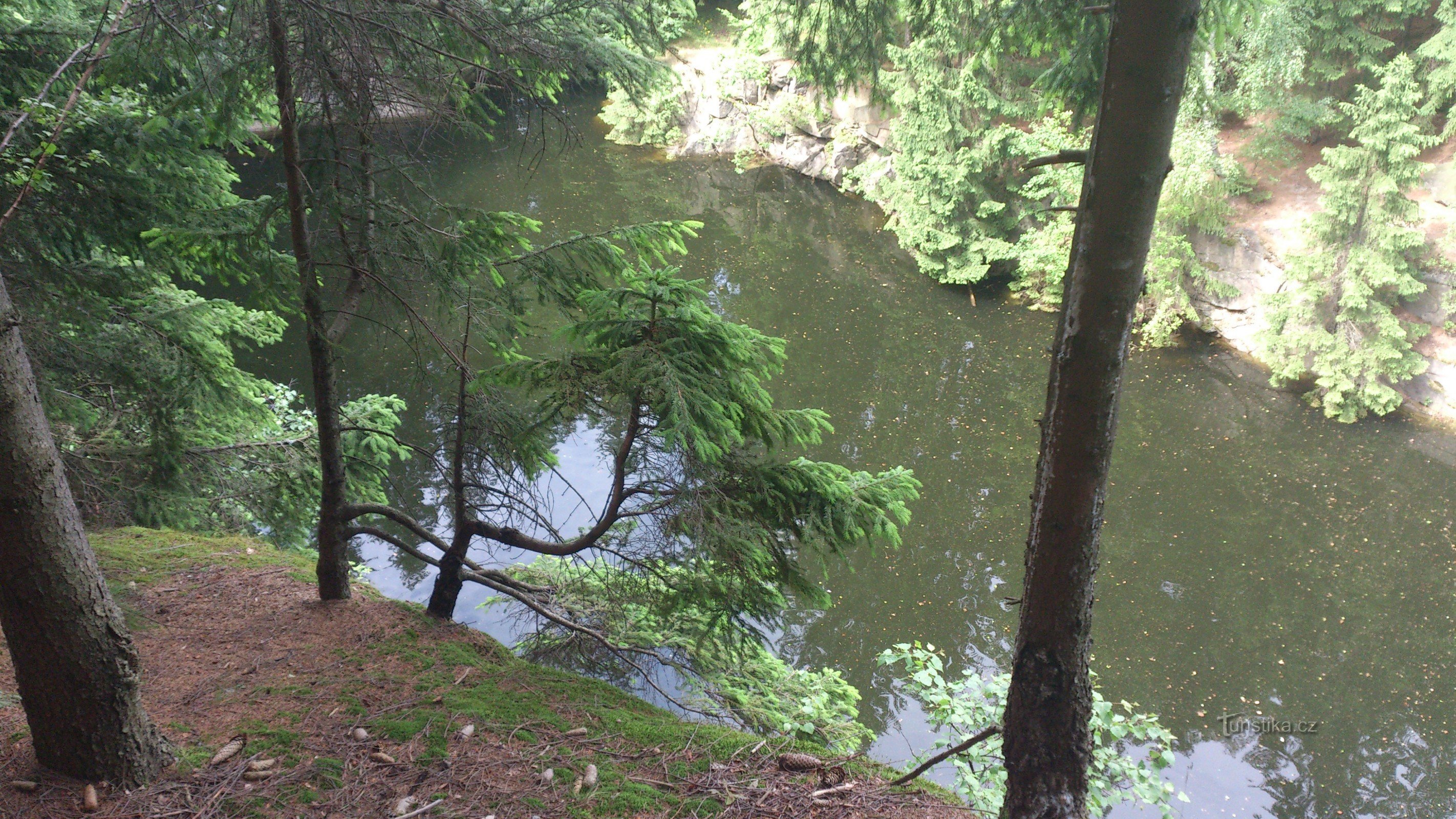 Zajímavý velmi romantický zatopený lom.Dostanete se sem buď z osady Zelená Hora, nebo můžete odbočit z červené značky (Lázně Jeseník -Prudký potok - Kaltenštejn - Žulová)vlevo kousek za Mariiným pramenem.