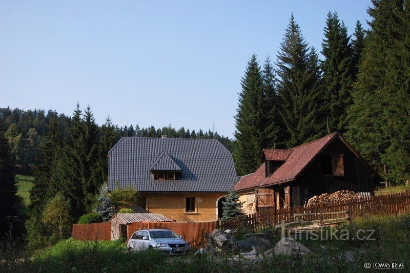 Rozcestí žluté a zelené turistické značky se nachází cca 1 km severovýchodně od městečka Branná v Hrubém Jeseníku. Nedaleko lokality vede železnice do Ramzové.