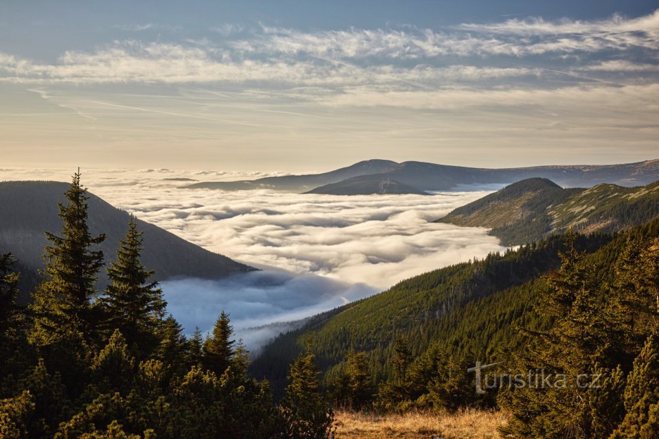 Barevná údolí, jednou zalitá sluncem, podruhé zahalená mlhou, ze které vystupují vrcholky hor. Chladný, svěží vzduch, který už občas zavoní sněhem, pročistí hlavu i plíce. Krkonoše nabízejí v podzimním chmurném počasí útočiště všem, kdo hledají klid přírody a barevné zážitky. Lanové dráhy vás vyvezou nad šeď a mlhu. Během září jezdí také Krkonošské cyklobusy, a to vždy ve čtvrtek, sobotu, neděli…