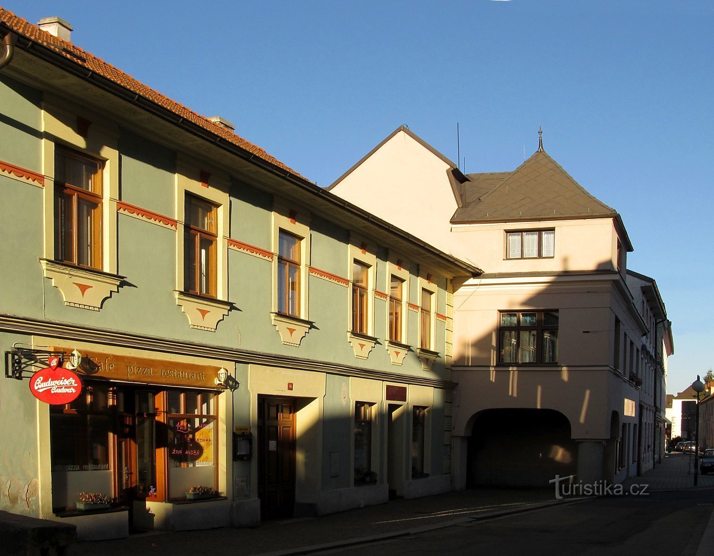 Barokní apatyka byla do domu čp. 14 umístěna až v roce 1998, a sice poté, co byla objevena při rekonstrukci hradu. Ani na hradě však lékárna v minulosti nebývala, hrad pro ni sloužil pouze jako místo uložení od šedesátých let 20.století, kdy byla lékárna zrušena v domě na náměstí čp.43.Dům čp. 14 pochází z roku 1556. Stavitelem domu byl švec jakob Groessinger a ševcovské řemeslo provozovali…