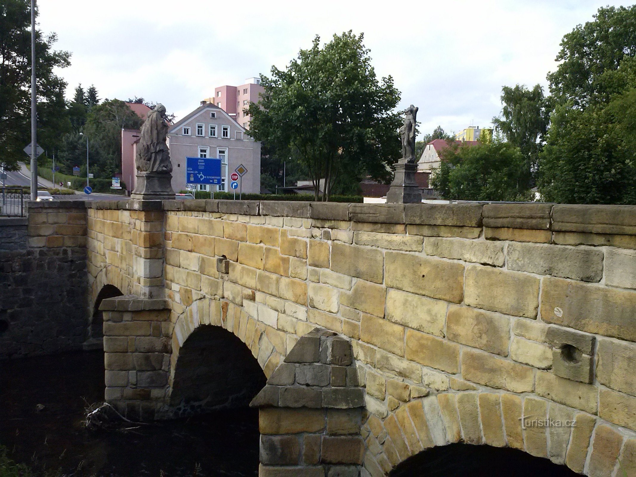 Barokní kamenný most se třemi oblouky na Pražské ulici v Rumburku.