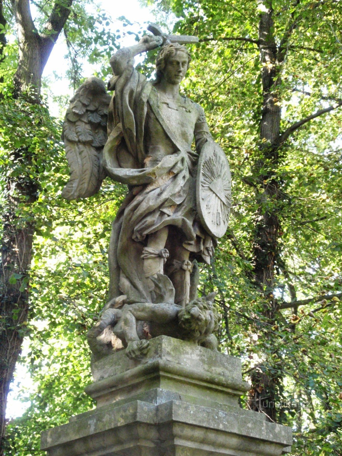 Jedná se v první řadě o sochu Archanděla Michaela (z roku 1726), nejznámějšího z archandělů, vítězícího nad drakem, čímž symbolizuje také vítězství křesťanství nad pohanstvím.