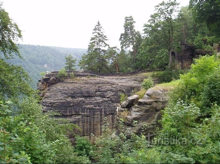 Nejstarší upravená vyhlídka Českého Švýcarska na 130 m vysoké skále u obce Labská Stráň. Je zde umělá jeskyně a hotel.
