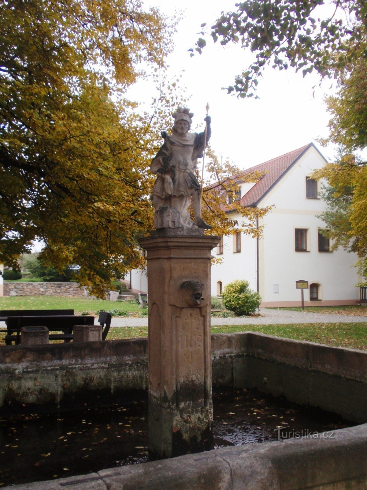 Nejstarší skulpturou je drobnější soška sv. Floriána, umístěná ve středu čtyřboké Kamenné kašny na nádvoří místního zámku. Pochází z roku 1720.