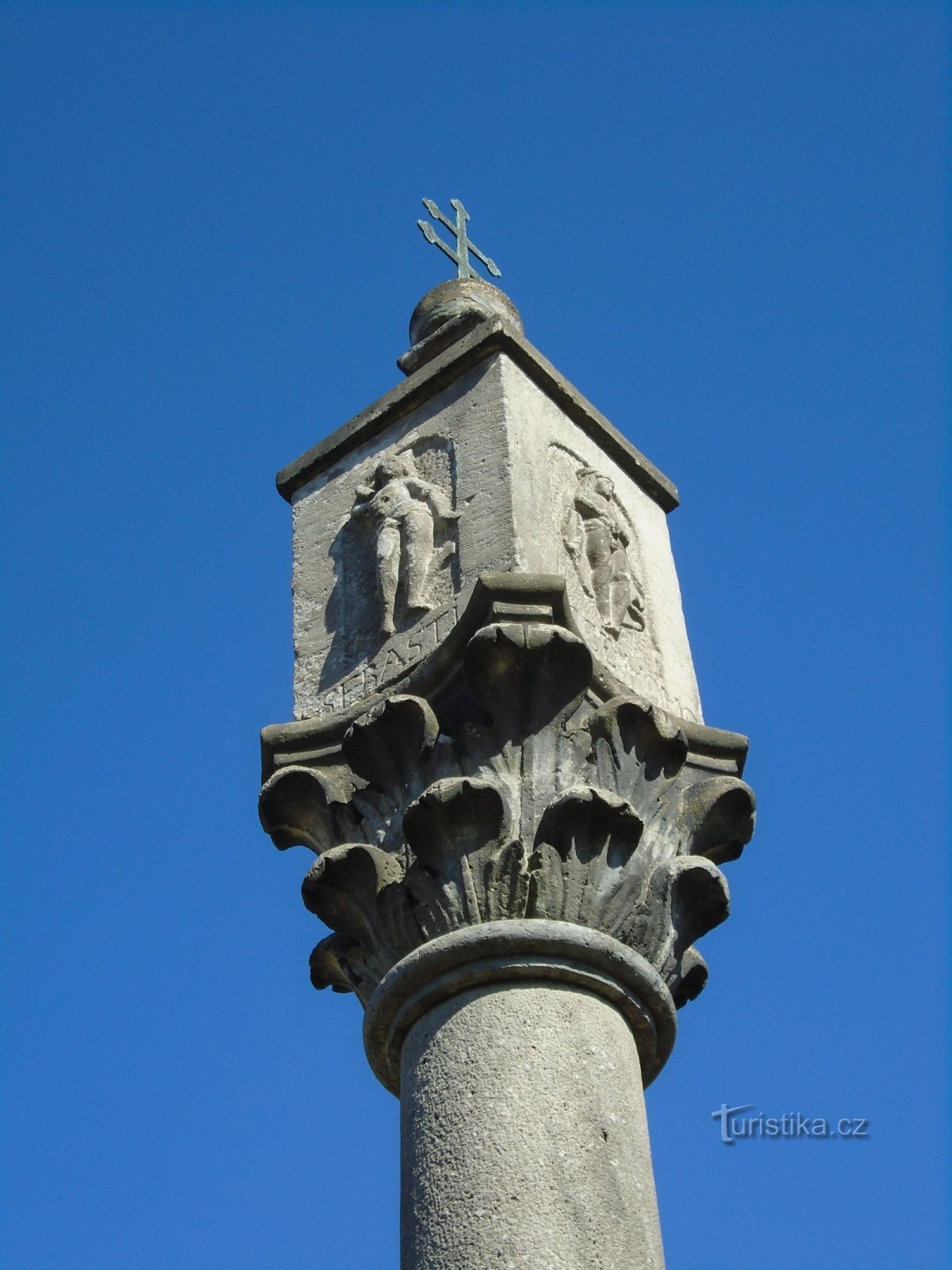 Tento objekt pochází z roku 1686 a vztyčen byl podle lidové tradice na památku osvobození Budína od Turků. Nachází se na rozcestí proti kasárnám v Palackého ulici. Na základovém stupni je sokl s reliéfy sv. Jana Křtitele, Jana Nepomuckého a sv. Floriána a nápis: „RE.A.1794|L. P. 1686|SLIB . MV|G . VICONA|WAM . V|ROKV . V KTEREM|KRZEST|ANE TVR|CVM . BVD|IN. BRAL|I . SNACL|ADEM|P . C . S|S . A . B …