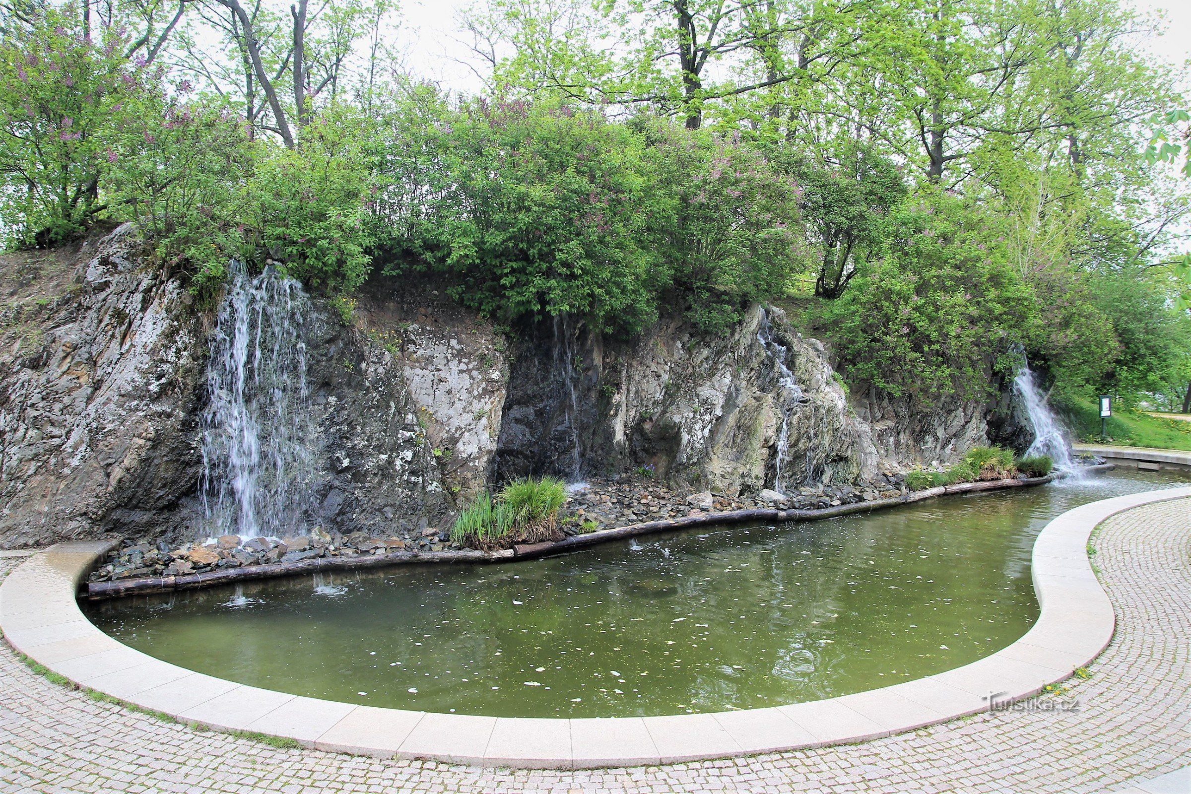 Brno-park Špilberk - skalní jezírko s vodopády