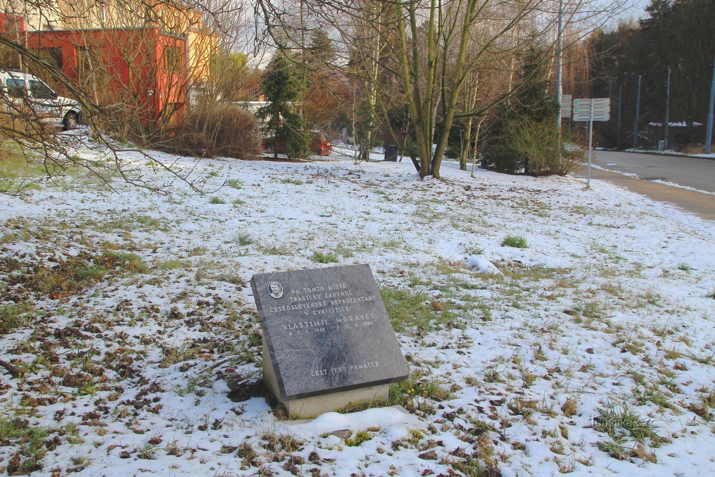 Nachází se v brněnské městské části Kohoutovice v Libušině údolí u hlavní komunikaci směřující do centra Brna. V těchto místech tragicky zahynul významný cyklista a československý reprezentant Vlastimil Moravec. Zemřel ve věku pouhých 37 let. Tragicky zahynul právě na kole 15. dubna 1986, kdy při rychlé jizdě z kopce do něho narazilo nákladní auto. Mezi jeho sportovní úspěch lze uvést na 110…