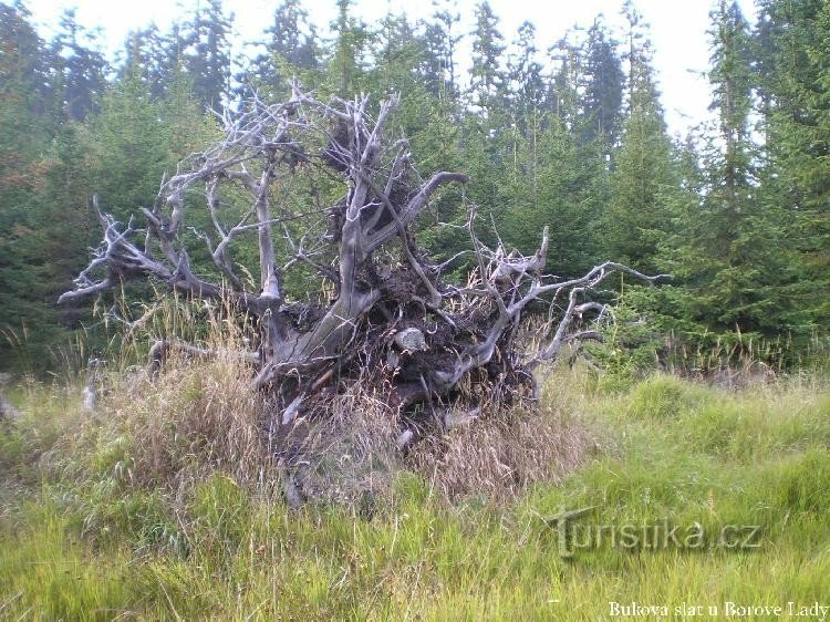 Zhruba 5 km od obce Borová Lada se rozprostírá ve vzdálenosti asi 15 km jihozápadně od města Vimperka rozsáhlé rašeliniště Buková slať.