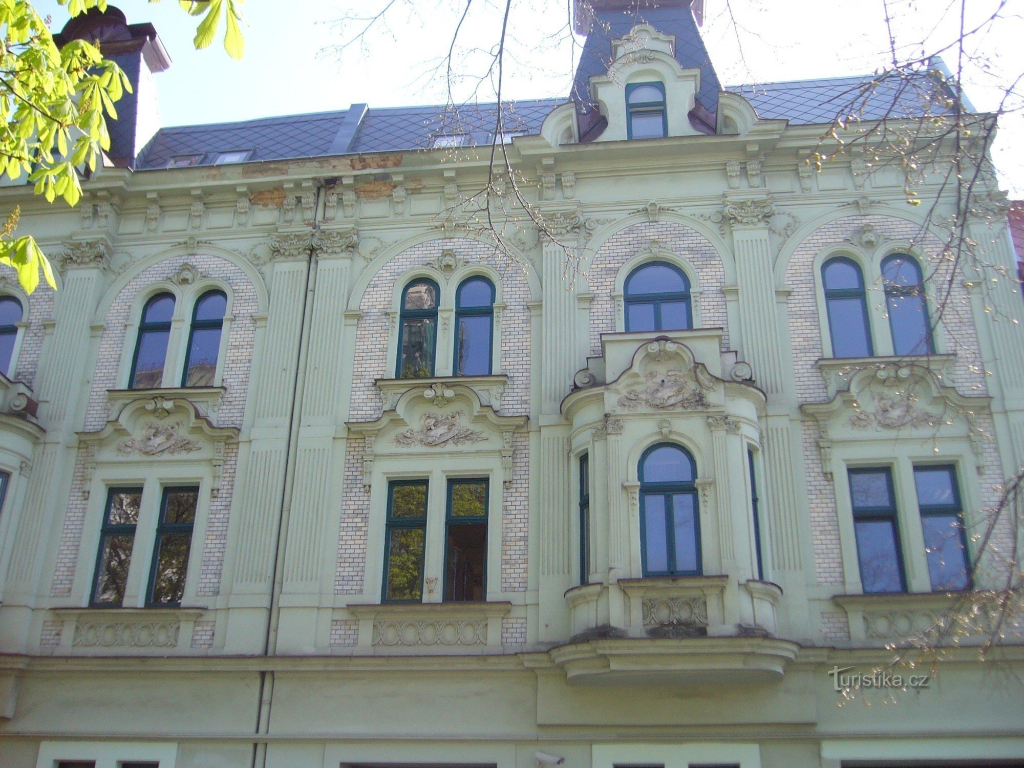 Zajímavá budova je v novobarokním slohu.