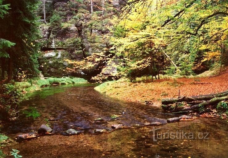 Pár metrů od státní hranice s Německem,kterou tvoří v těchto místech Křinice protékající kaňonem pískovcových skal,se nachází Černá brána.