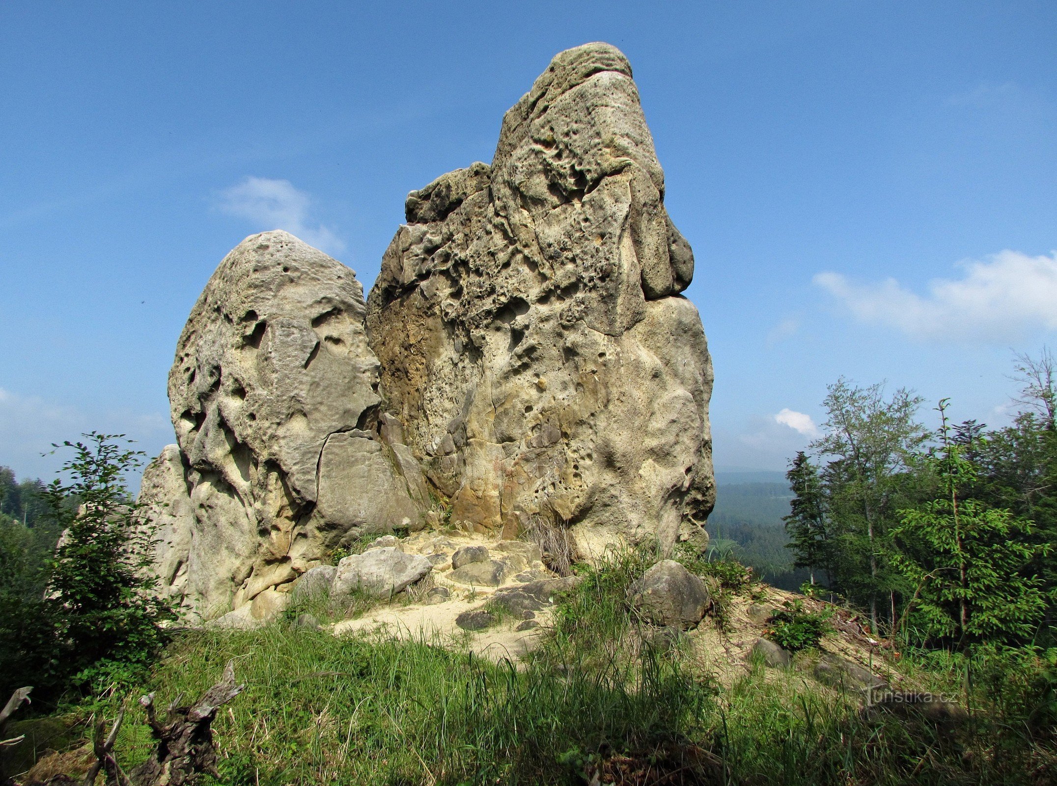 Návštěvník, stanoucí před nimi poprvé, si asi nejdříve protře svůj úžasem zamlžený zrak a vzápětí nevěřícně vydechne: "Jsou to opravdové skály anebo z kamene vytesaná umělecká díla?!?" (Obojí je pravda...) Skály, na první pohled působící "uměleckým dojmem" skutečně vypadají jako sousoší od věhlasného barokního mistra. V tomto případě je ale autorství jednoznačně přiřknuto Matce Přírodě. V…