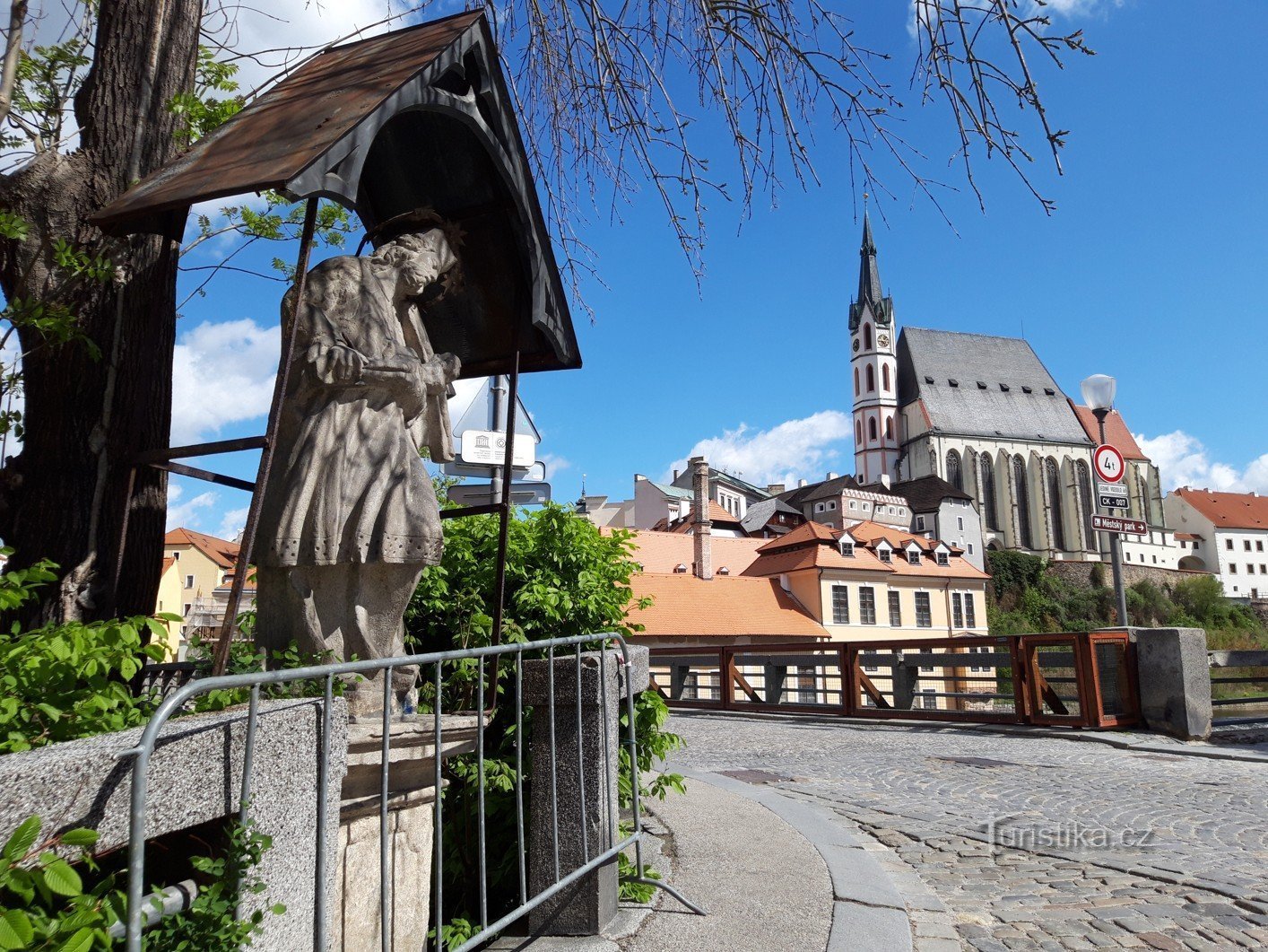 Český Krumlov a Jan Nepomucký na mostě Dr. E. Beneše