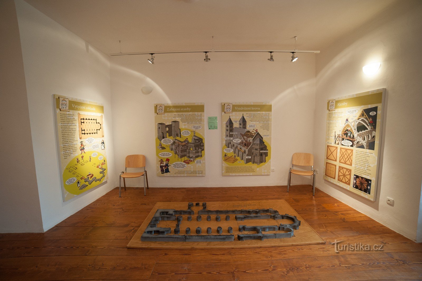 Expozice, určena návštěvníkům všech věkových kategorií, je doplněna interaktivními exponáty, na kterých si sami mohou vyzkoušet práci starých mistrů. Celou expozicí symbolicky provází dvě historicky doložené postavy…