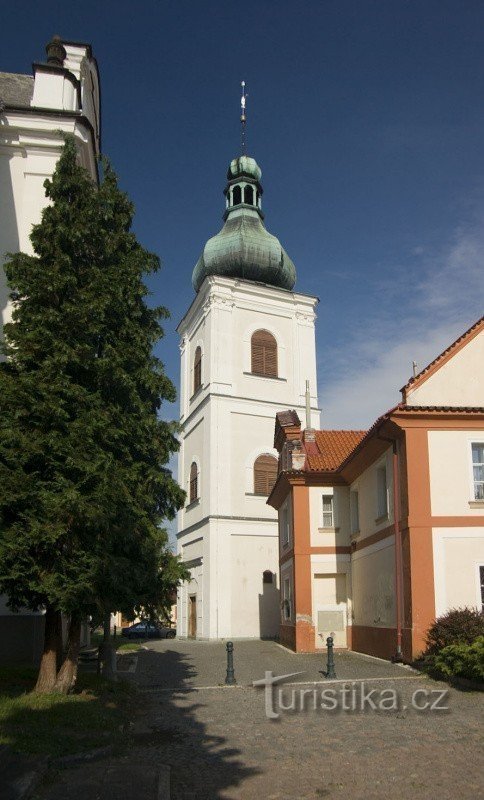 V městě býval dříve nejspíš dřevěný kostel, později snad částečně zděný, renesanční. Kostel však několikrát vyhořel (1602, 1659, 1725). Nový kostel byl vybudován v l. 1728-33. Orientovaná barokní stavba s hlavní podélnou lodí a vedlejší příčnou na půdorysu kříže. K presbytáři zezadu přiléhá osmiboká zákristie. Omítky s pilastry a římsami. Vnitřní valená klenba dosahuje 18m výšky. Na hlavním…