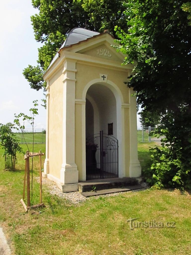 Hned na okraji obce je docela zajímavá kaplička, bohužel kromě data v průčelí nedokážu určit její zasvěcení. Tak aspoň fotím interiér a pokračuju k náměstí. Zámek s pivovarem je co by kamenem dohodil. Zastavuju se v osvěžovně před pivovarem a…
