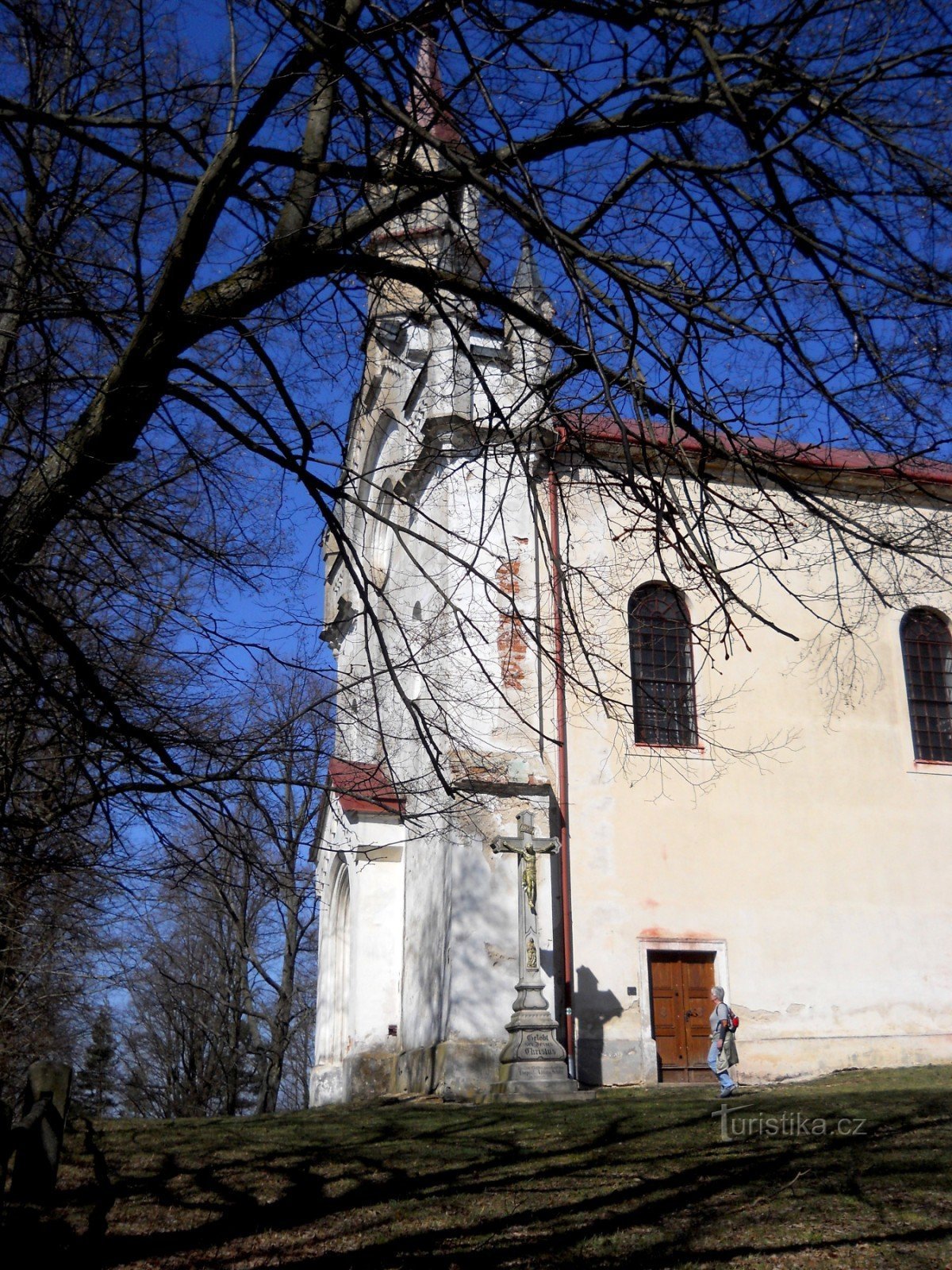 Poutní kostel se nachází na návrší 1 km jihovýchodně od obce Cizkrajov, u obce Mutná. Tam také jsme zanechali auto, když jsme se tudy toulali o naší dovolené. Z obce tam vede zelená turistická značka. Z Mutné je to 1 km, pokud budete po zelené pokračovat, dostanete se po 5,5 km do Slavonic.