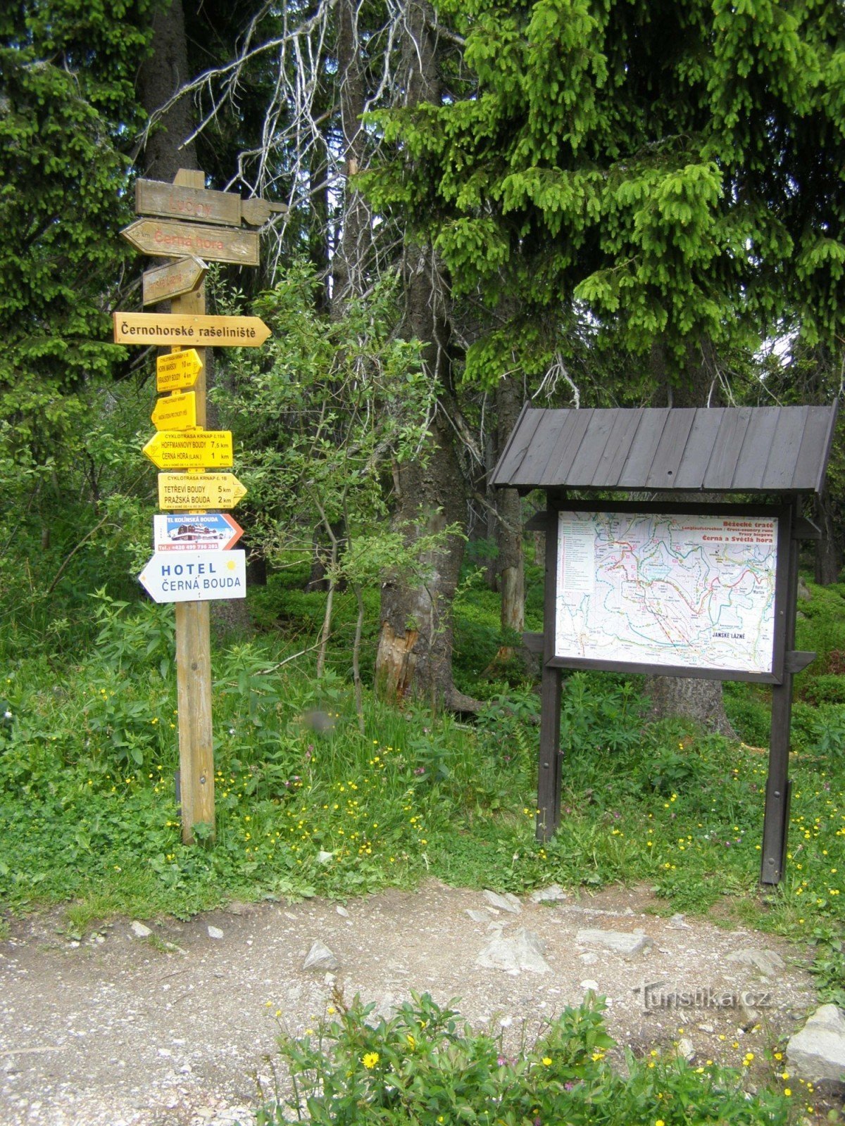 Cykloturistický rozcestník, který se nachází mezi hotelem Černá Bouda a oblastí Václaváku, ukazuje cyklistům směr po 3 cyklotrasách vyznačených Krnapem. Po trase 1B ve směru Horní Maršov, Krausovy Boudy - Pražská bouda, Tetřeví Boudy, po trase 19C ve směru k Černé Hoře a Hoffmannovým boudám. Samostatně je značena Naučná stezka pro cyklisty i pěší. Trasy pro cyklisty jsou však sjízdné v období 1.4…