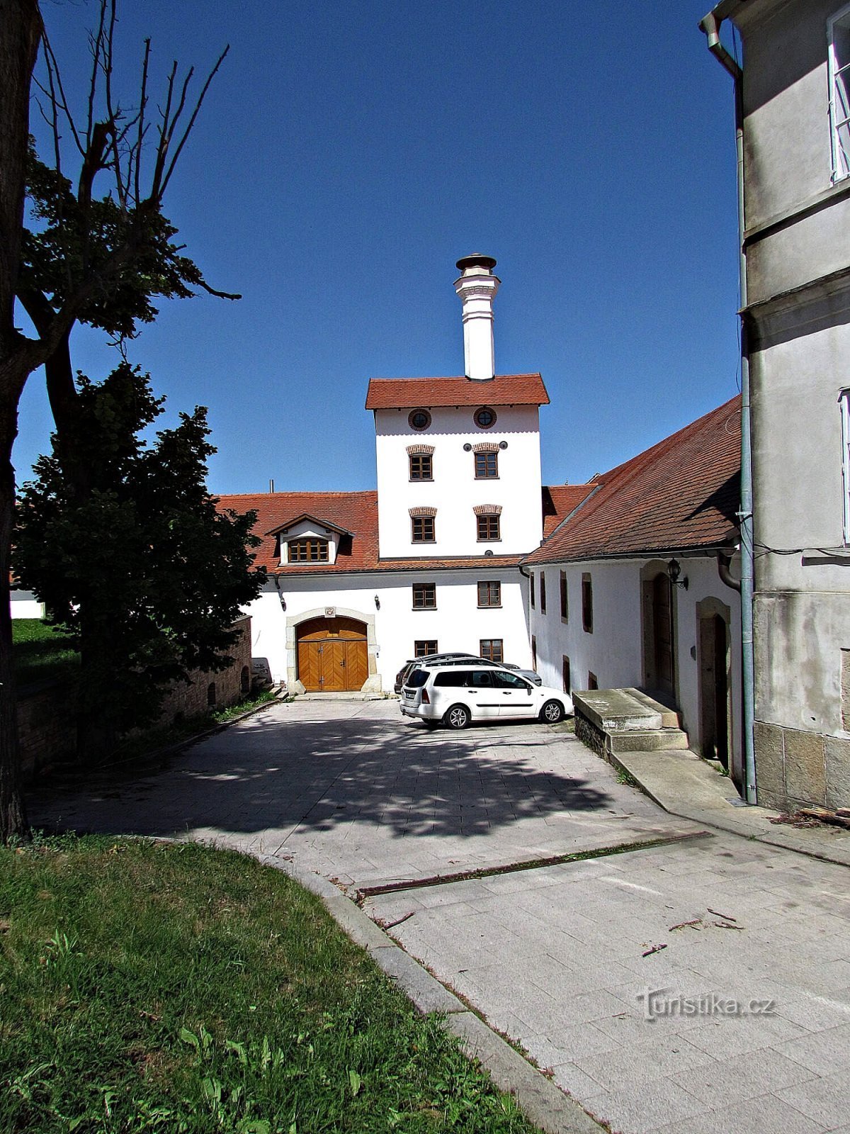Při procházce Krajířovou ulicí jsme na jejím začátku nejprve poobdivovali „starý“ renesanční zámek, ale zaujal nás i krásně opravený areál bývalého pivovaru, tvrze a sýpky, nacházející se jen o pár kroků dál. Všechny tyto budovy na slunci zářily novými bílými fasádami, červenou krytinou a viděli jsme, že jsou všude nainstalovány i nová dřevěná okna a dveře.