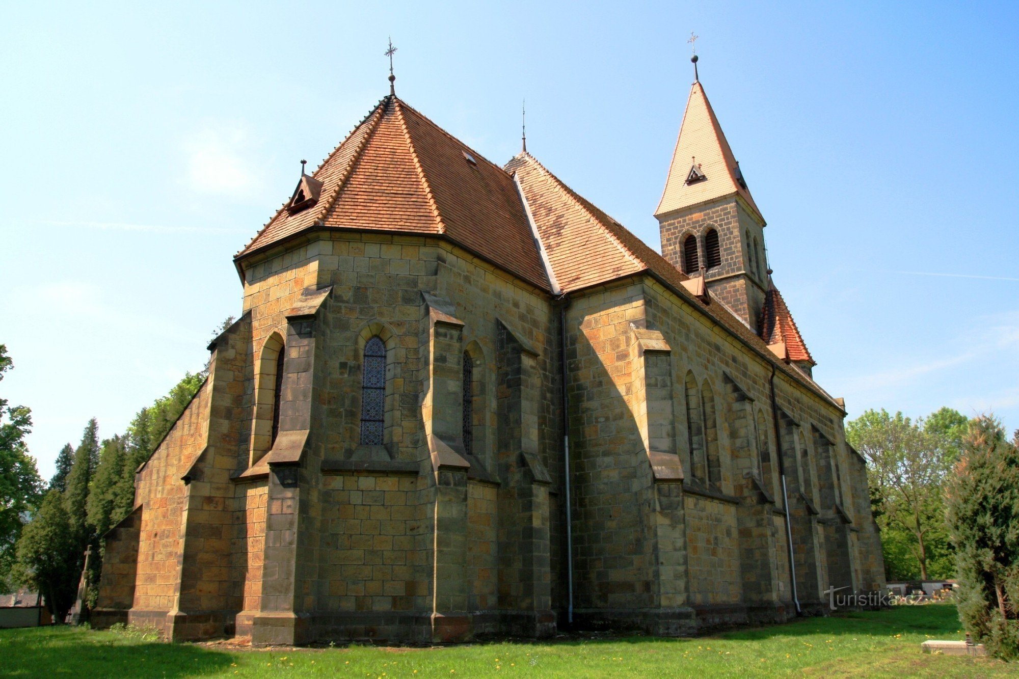 Nachází se uprostřed obce u hlavní ulice a vytváří zdejší dominantu viditelnou ze širokého okolí. Původě zde stával gotický Kostelík, který s postupem let nejen chátral, ale přestal i postačovat zvyšujícímu se počtu věřících. Koncem 20. let 19. století se začalo uvažovat o stavbě nového kostela. S jeho stavbou se mělo původně započít už v roce 1830. Roku 1853 byl dokonce vypracován stavební plán…