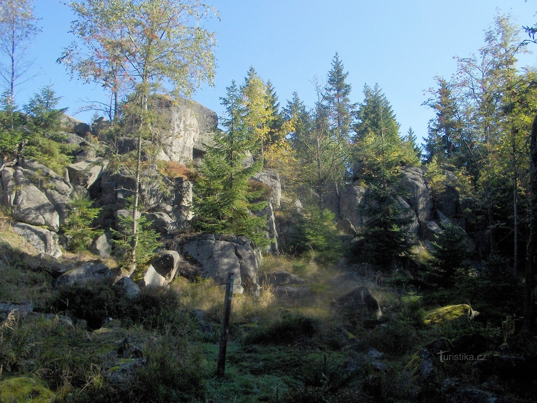 K Dračí skále vede odbočka z červeně značené turistické cesty vedoucí z Perninku…