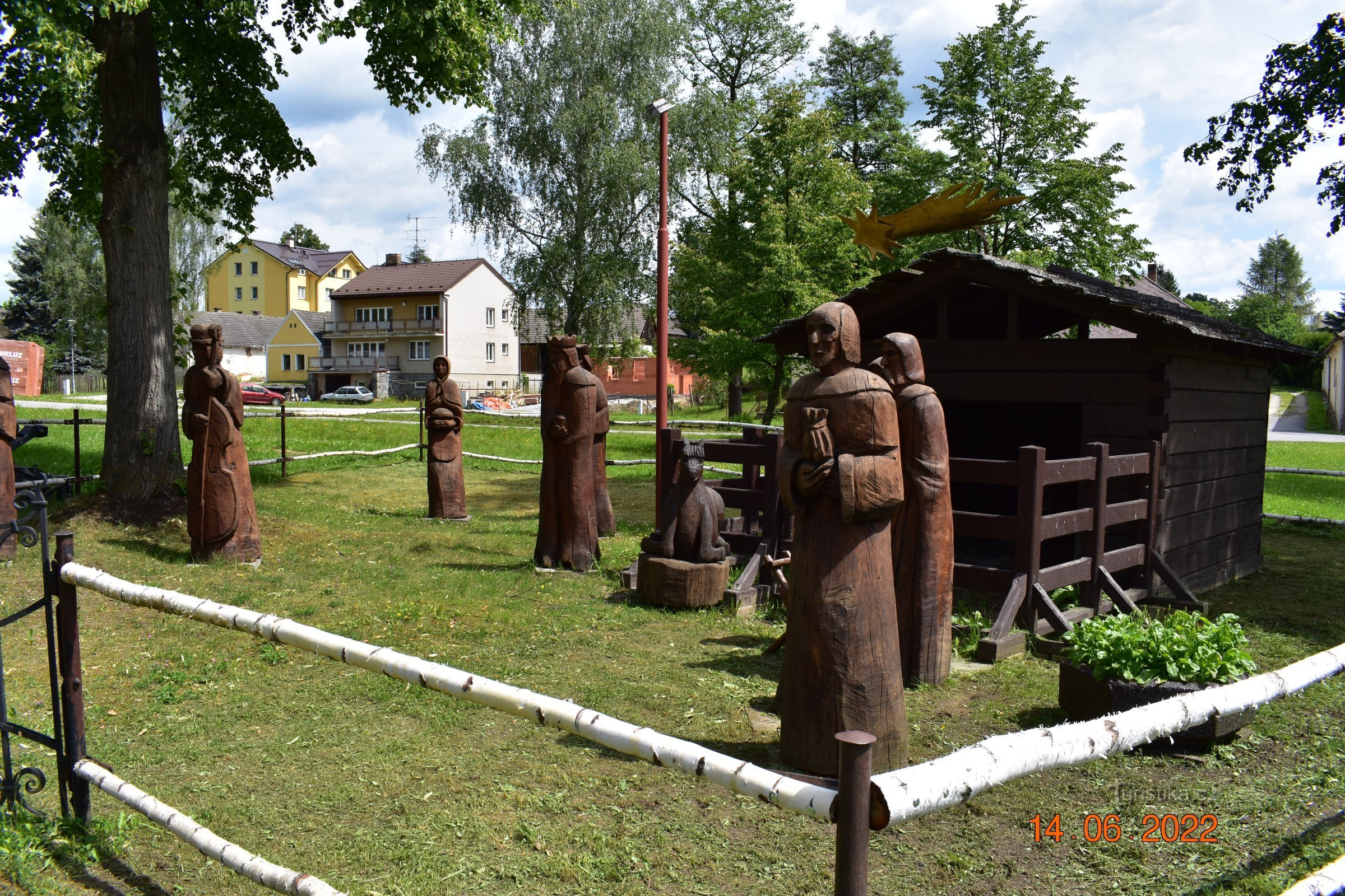 Jílovice 21, 373 32 Jílovice 14.6. 2022 Na betlém jsme narazili čistě náhodou, možná místní nechtějí, aby se jim tam zbytečně necouraly davy lidí, když jsme jeli z Borovan směrem na Hrady na Malši, tedy konkrétně na zříceninu Sokolčí. Betlém je přístupný a jedná se o dřevěné sochy v životní velikosti. Opravdu moc hezký a stojí za zhlédnutí.GPS: 48.89171, 14.72506