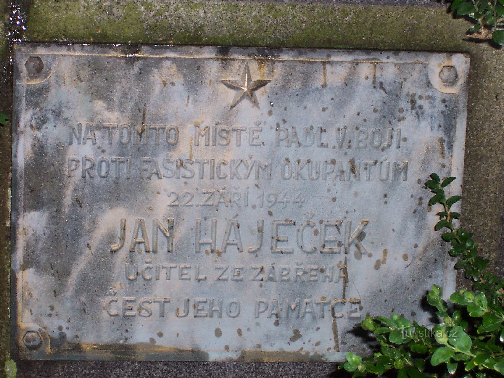 Na místě pomníku padl 22. září 1944 učitel ze Zábřeha na Moravě pan Jan Háječek v boji proti fašistickým okupantům.