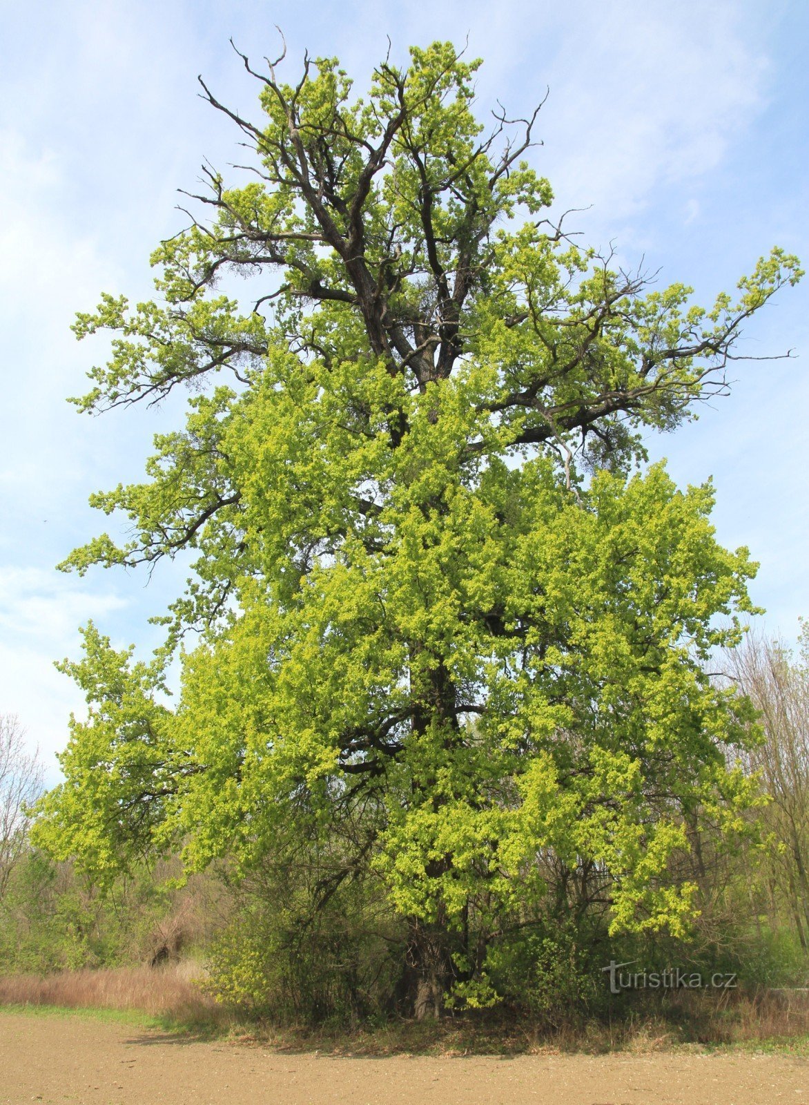 Tento mohutný dub letní se nachází na okraji pole poblíž ochranné hráze řeky Dyje při účelové zpevněné cestě směřující z Bulhar do Přítluk. Obvod kmene v prsní výšce je 5,65 m, jeho celková výška dosahuje 21 m a stáří stromu je odhadováno na 250-300 let. Je jedním z několka málo soliterních dubů,které se na kastastu obce dosud uchovaly. Po zásahu bleskem v nedávné domě byla poškozena koruna i…