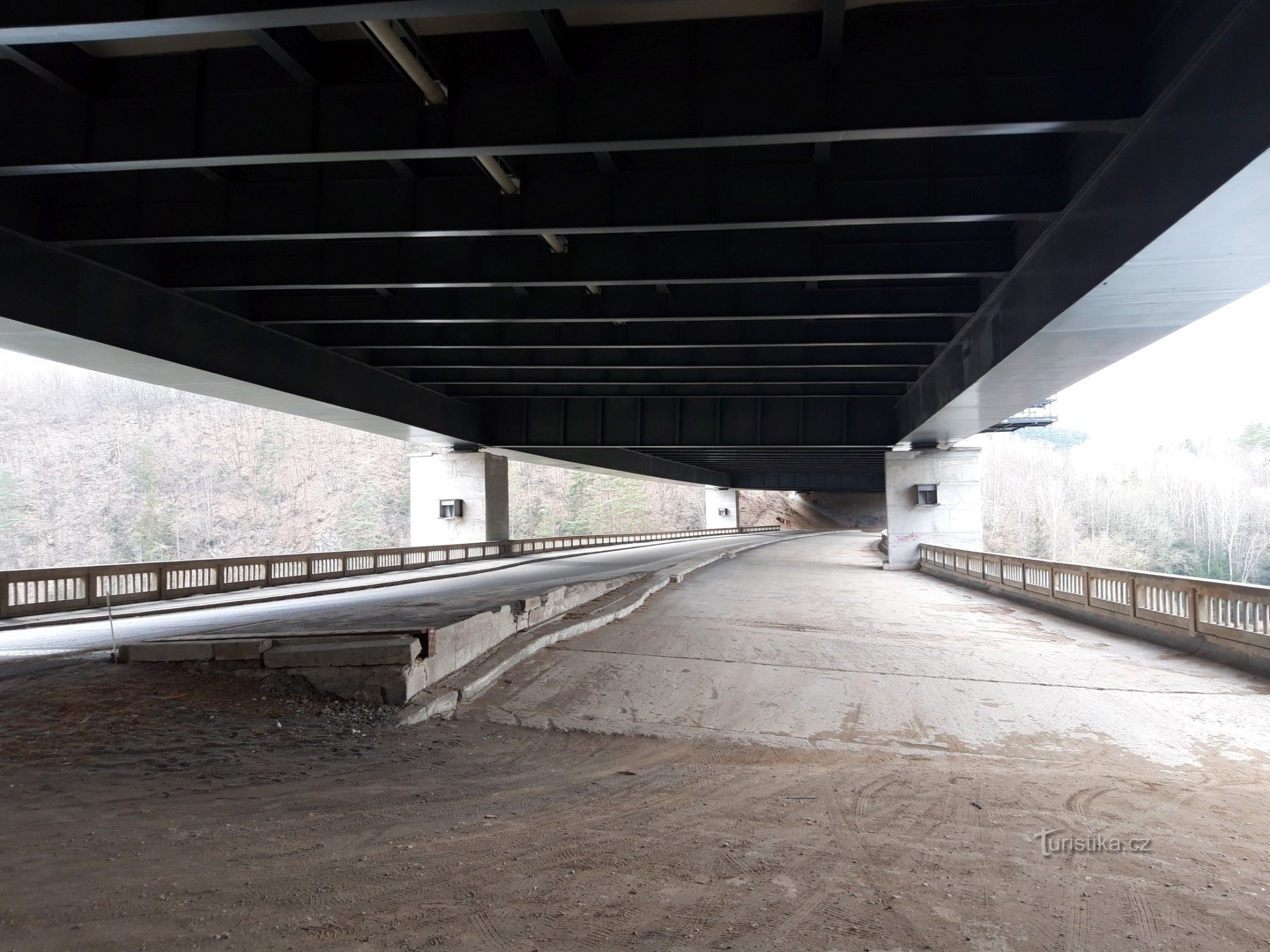 Při cestě od Prahy je potřeba zvolit sjezd na km 75, za kterým musí člověk pokračovat po místní komunikaci dvakrát vlevo a poté dvakrát vpravo. Silnice vede podél dálnice, aby se brzy objevil unikátní dvojmost…