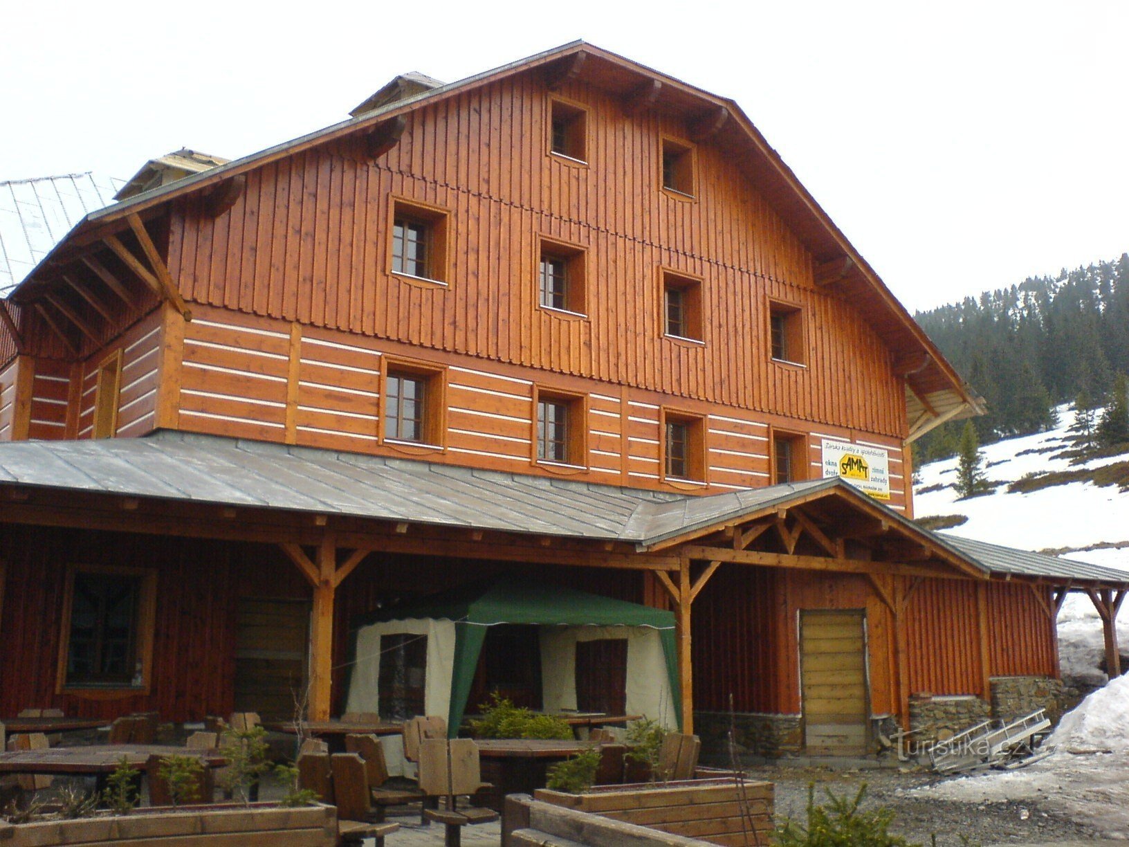 Horské boudy na jižním svahu Lysé hory, založeny v letech 1707-1708 jako tzv. Rokytenské dvorské boudy (budní hospodářství), dnešní stav z r. 1928, stanice Horské služby, sjezdovky, vleky.