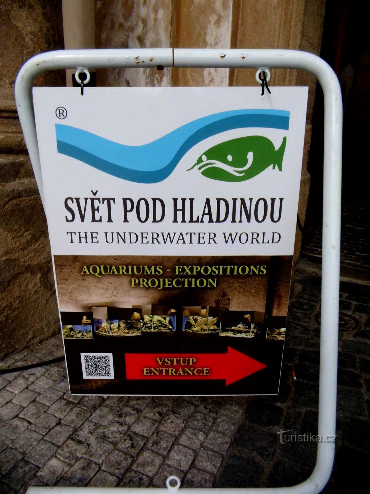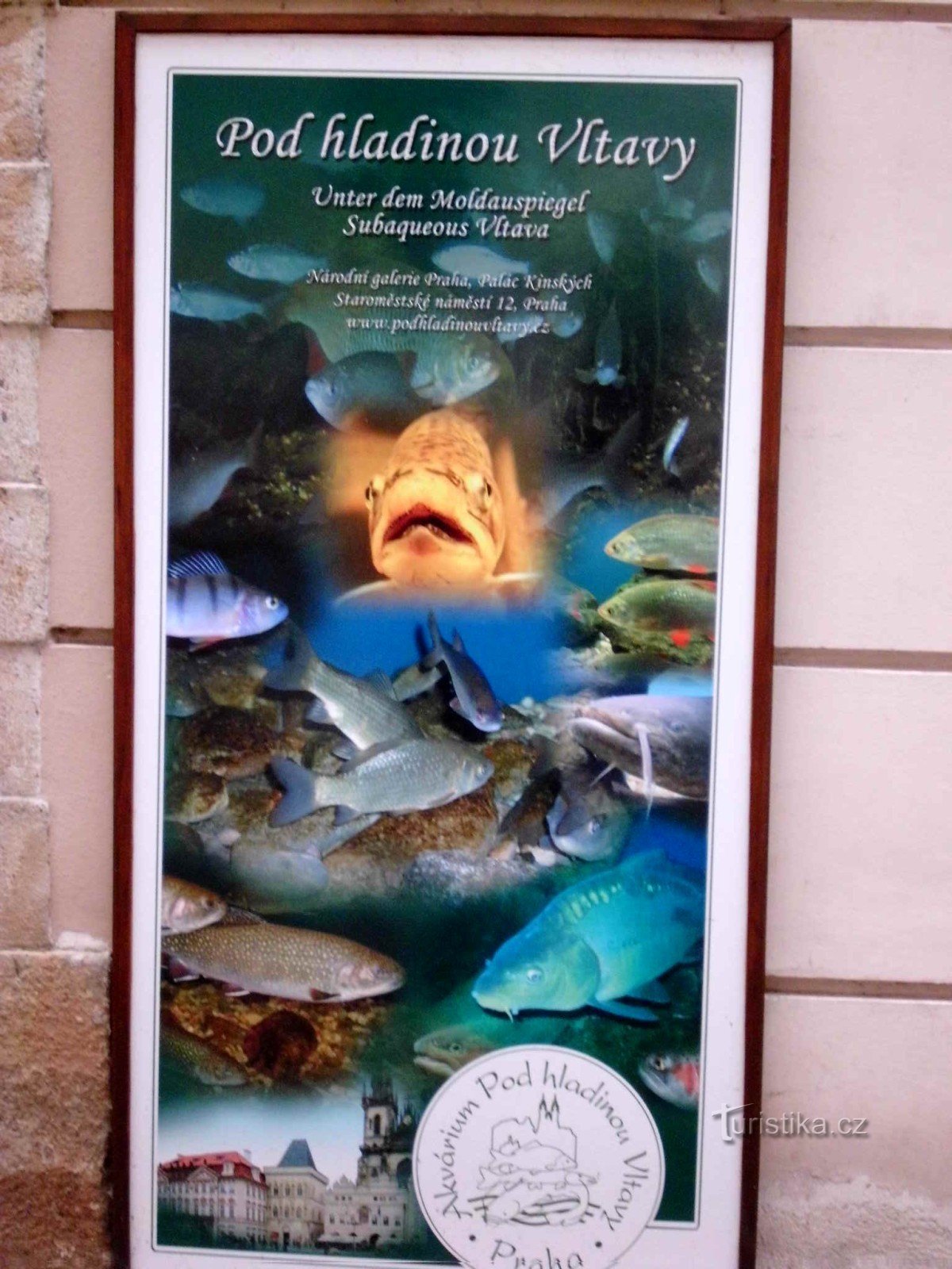 Vážení přátel turistiky i Turistiky, tentokrát Vás pozvu na výstavu Pod hladinou Vltavy, která je v podzemních prostorách paláce Kinských na Staroměstském náměstí. Na této výstavě uvidíte ryby žijící ve Vltavě potažmo v dalších našich řekách. Jsou zde v akváriích kapři, štiky, jeseteři, pstruzi, okouni a další.Na ploše 350 m2 spatříte celkem18 akvárií o celkovém obsahu 25 000 litrů vody