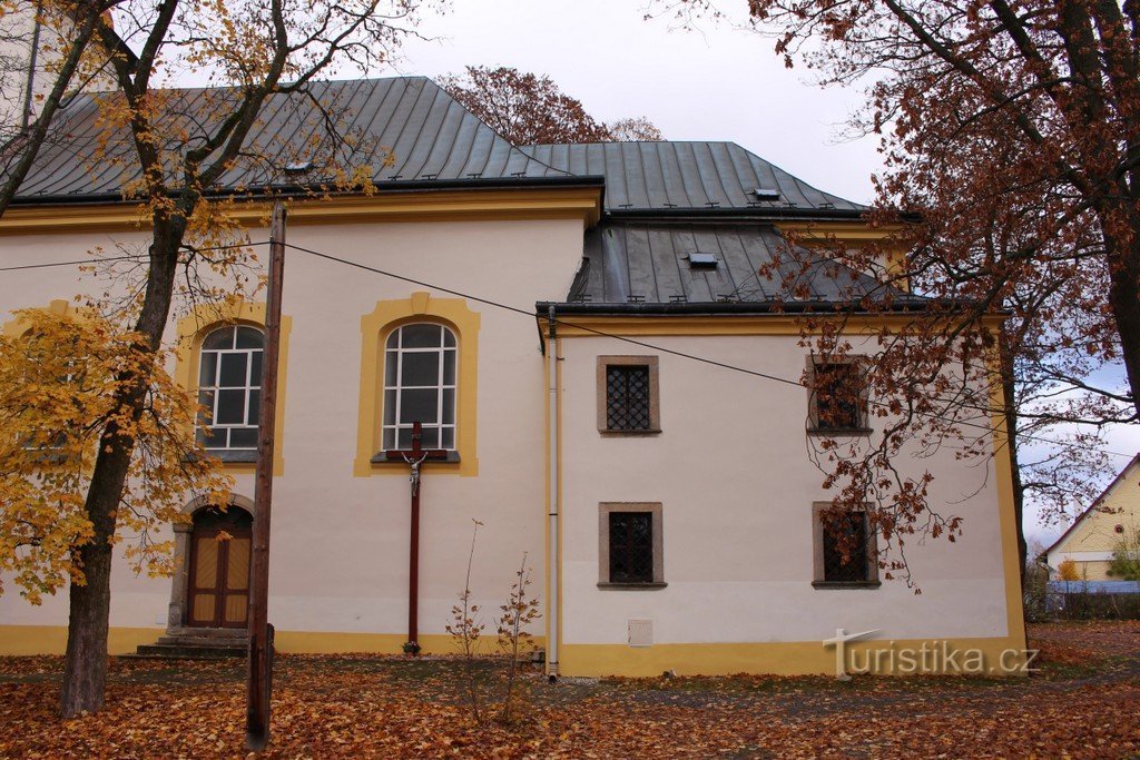 Kostel se nachází v místní části města Horní Lomany. Ze směru od města je po pravé straně silnice, která pokračuje na městský okruh. Svatyně stojí na malém prostranství a trochu se ztrácí mezi stromy. Kostel byl postaven v barokním slohu v roce 1740 a jeho další větší oprava proběhla v roce 1793. Hlavní loď je na obdélníkovém půdorysu a navazuje na ní pravoúhlý presbytář. Na západní straně je…