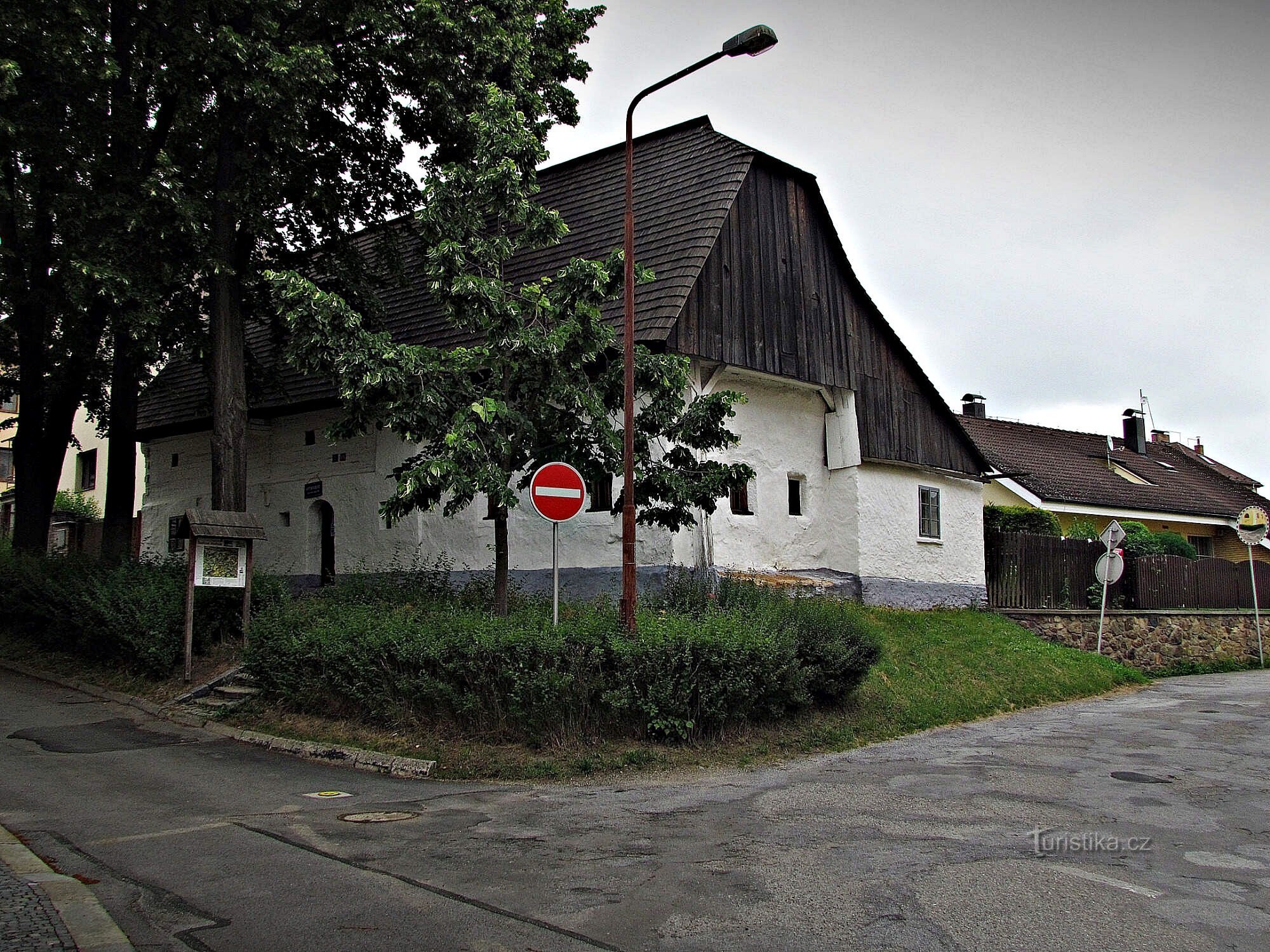 Pohled na ni zřejmě přivodí nepoučenému návštěvníku pořádný šok, ale není se čemu divit – typ pozdně středověkého roubeného stavení umístěný mezi honosný augustiniánský klášterní chrám s kaplí Božího hrobu, kostel Husova sboru a okolní moderní zástavbu se jinde asi hned tak nevidí!