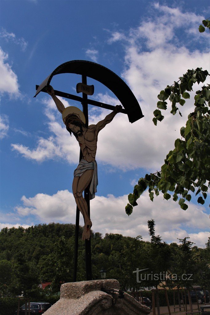 Hejnice, kříž v parku u bývalého kláštera.