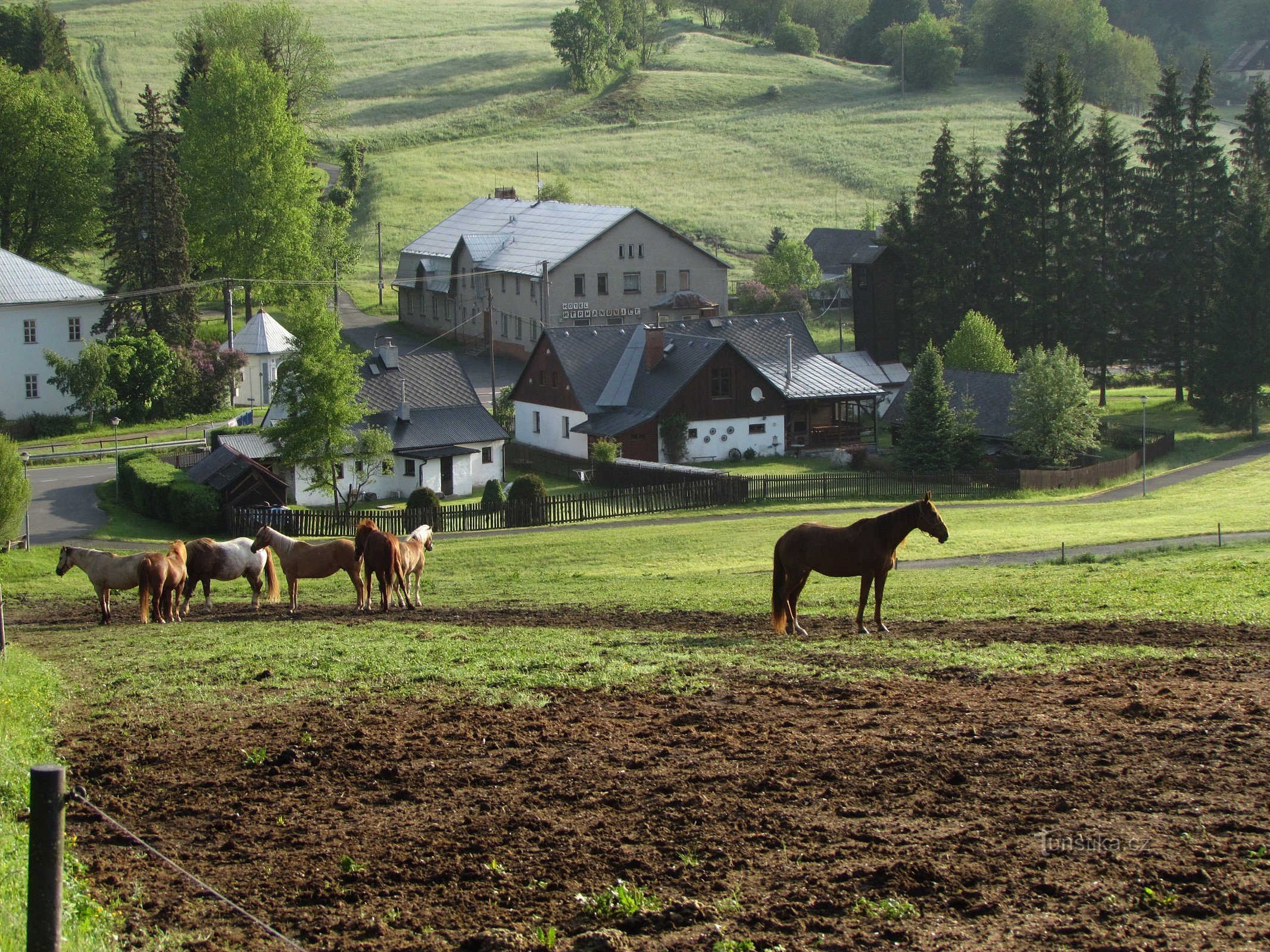 Ze středu Heřmanovic, půvabné vesničky s mnoha památkami lidového stavitelství (i těmi sakrálními) není vidět, neboť dědinka je utopena v hlubokém údolí horního toku Opavice. Pokud pojedete do obce po silnici, spojující ji se Zlatými Horami, určitě ji nepřehlédnete, protože její bělostná stavba, vypínající se na návrší nad velkým lomem, je takovým místním majákem. Hezké pohledy se na ni…