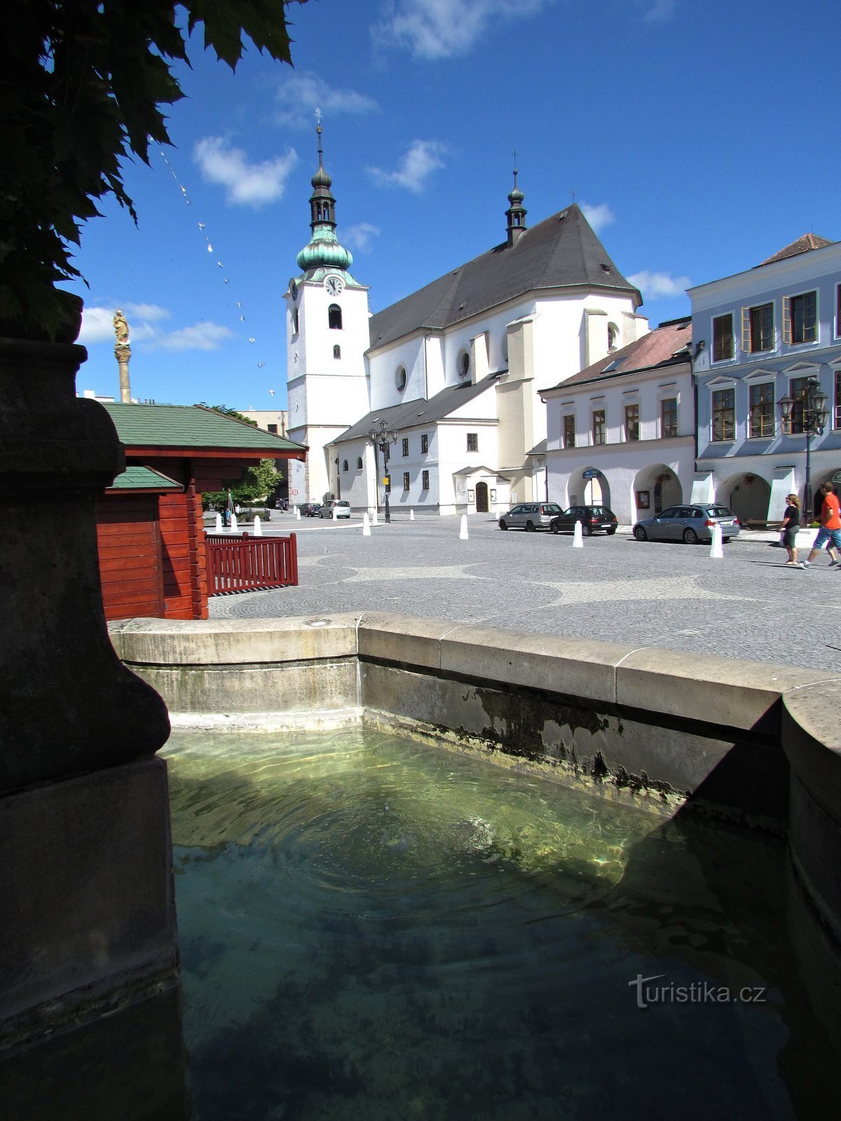 Ve své západní části se 670 metrů dlouhé svitavské náměstí Míru rozšiřuje a jeho plocha je tady ozdobena barokní městskou kašnou a morovým sloupem. Krásné barevné fasády okolních budov jsou sice dle pořekadla „každý pes jiná ves“... ale všechny ty barokní až klasicistní budovy s jiným vzhledem svého štítu se mezi sebou nijak nebijí a oko zvědavého návštěvníka na nich spočine s nevýslovným…