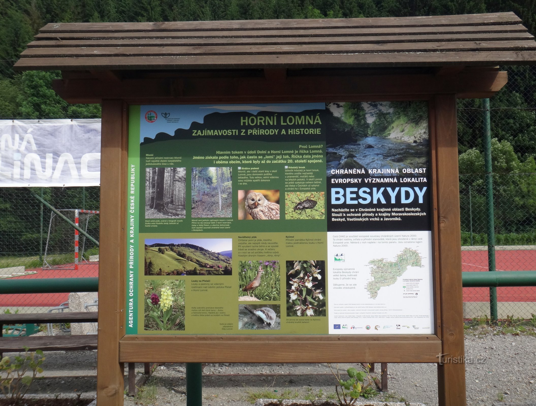 Při svém návratu od Kyčmolu procházím obcí Horní Lomná a zjišťuji, co se zde změnilo od mé poslední návštěvy v r. 2016. Dávno vím, že kde dříve bývalo koupaliště (z jedné strany voda přitékala a druhou stranou odtékala) je již dávno hřiště a hned vedle parkoviště. Jdu dále kolem bývalé základní školy a školy v přírodě, od r. 2014 je tam domov pro seniory (Dům integrovaných sociálních služeb). Ale…