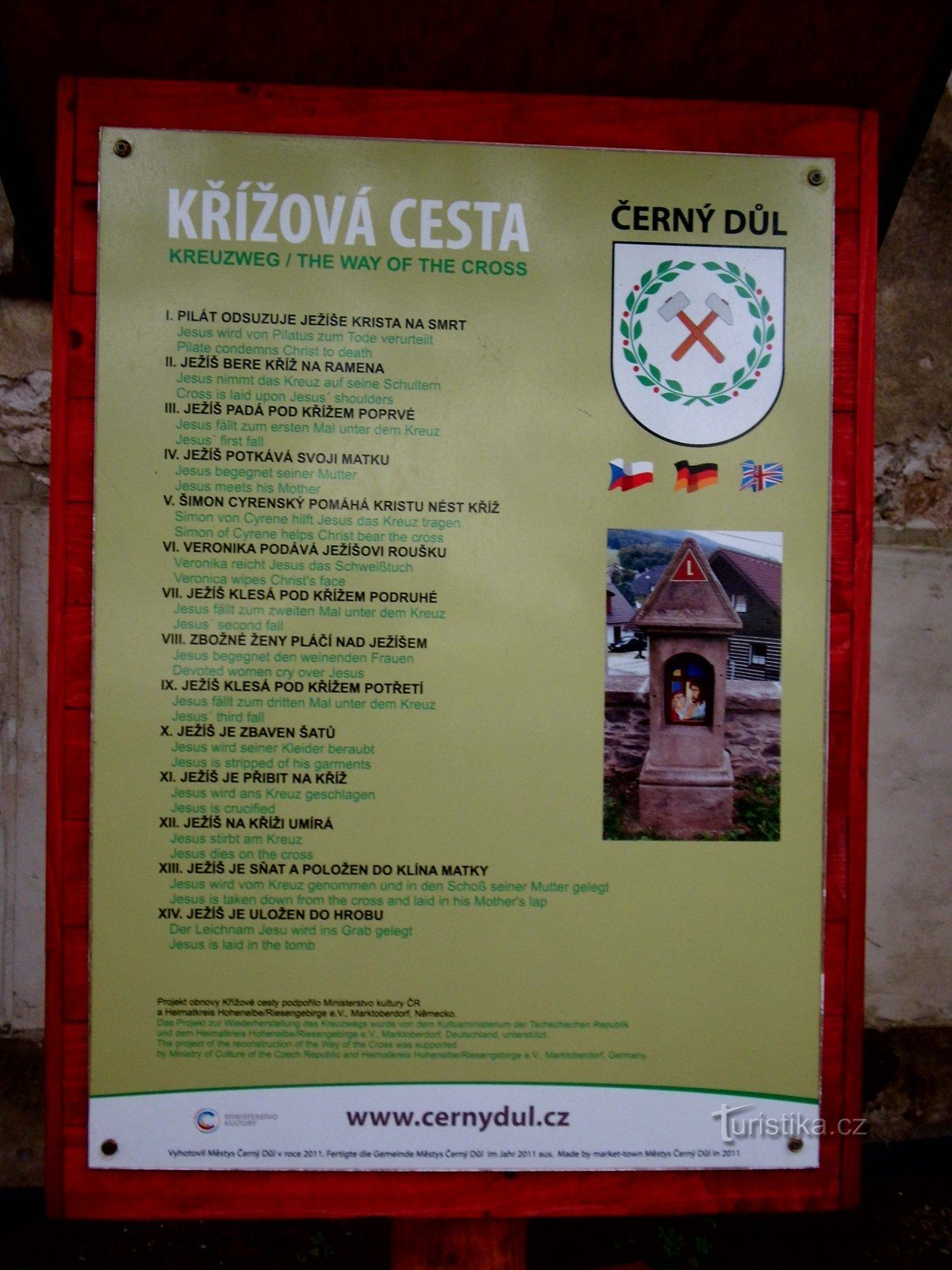 Vážení přátelé turistiky i Turistiky, rád bych Vás pozval na výlet krajem zaniklých důlních děl v okolí Černého Dolu. Do Černého Dolu se dostanete autobusem ze Svobody nad Úpou a vystoupíte v zastávce Černý Důl náměstí. Odtud nejprve dopručuji zajít ke kostelu sv. Michala, kde je krásná Křížová cesta. Cestou zpět na náměstí se zastavte v IC a Muzeu podzemí. Pak už se vydejte z náměstí po modré…