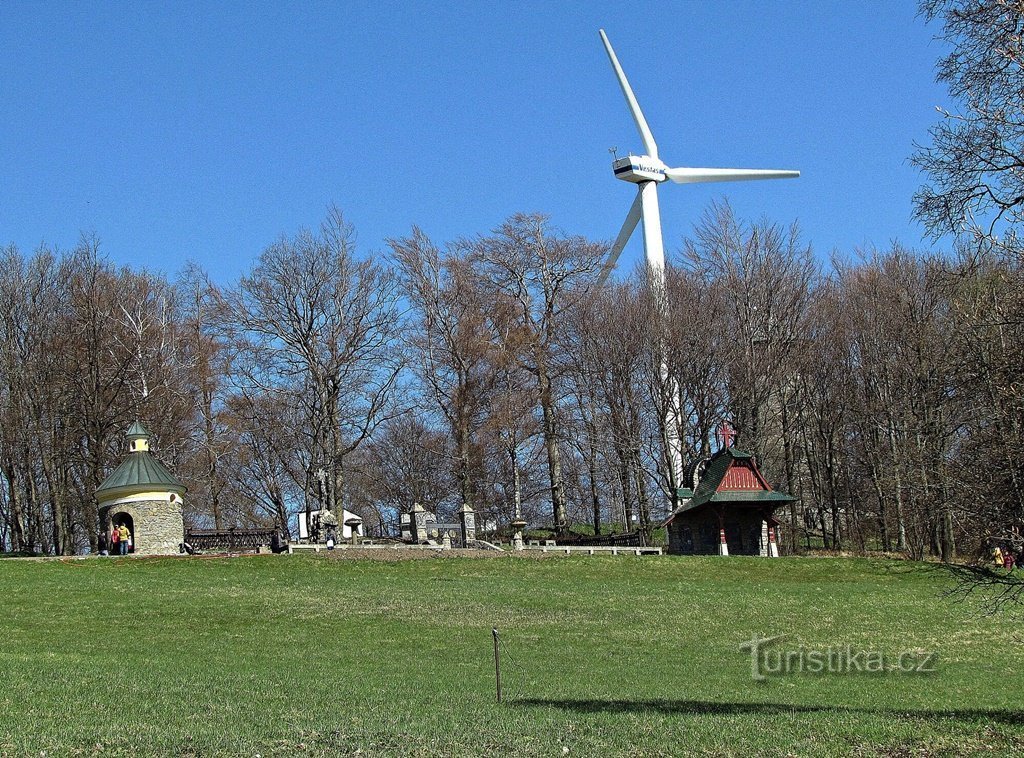 Byla zbudována v těsné blízkosti rozhledny a svůj provoz zahájila na jaře roku 1993. Na 32 metrů vysokém stožáru je umístěna třílistá laminátová vrtule o průměru 27 m. Výkon elektrárny činí 225 kW a svým nepřetržitým provozem zásobuje energií baziliku a přilehlé budovy. Provozuje ji olomoucké arcibiskupství a nahradila kotelnu, v níž se za rok spálilo více jak 400 tun uhlí. Je jedinou větrnou…