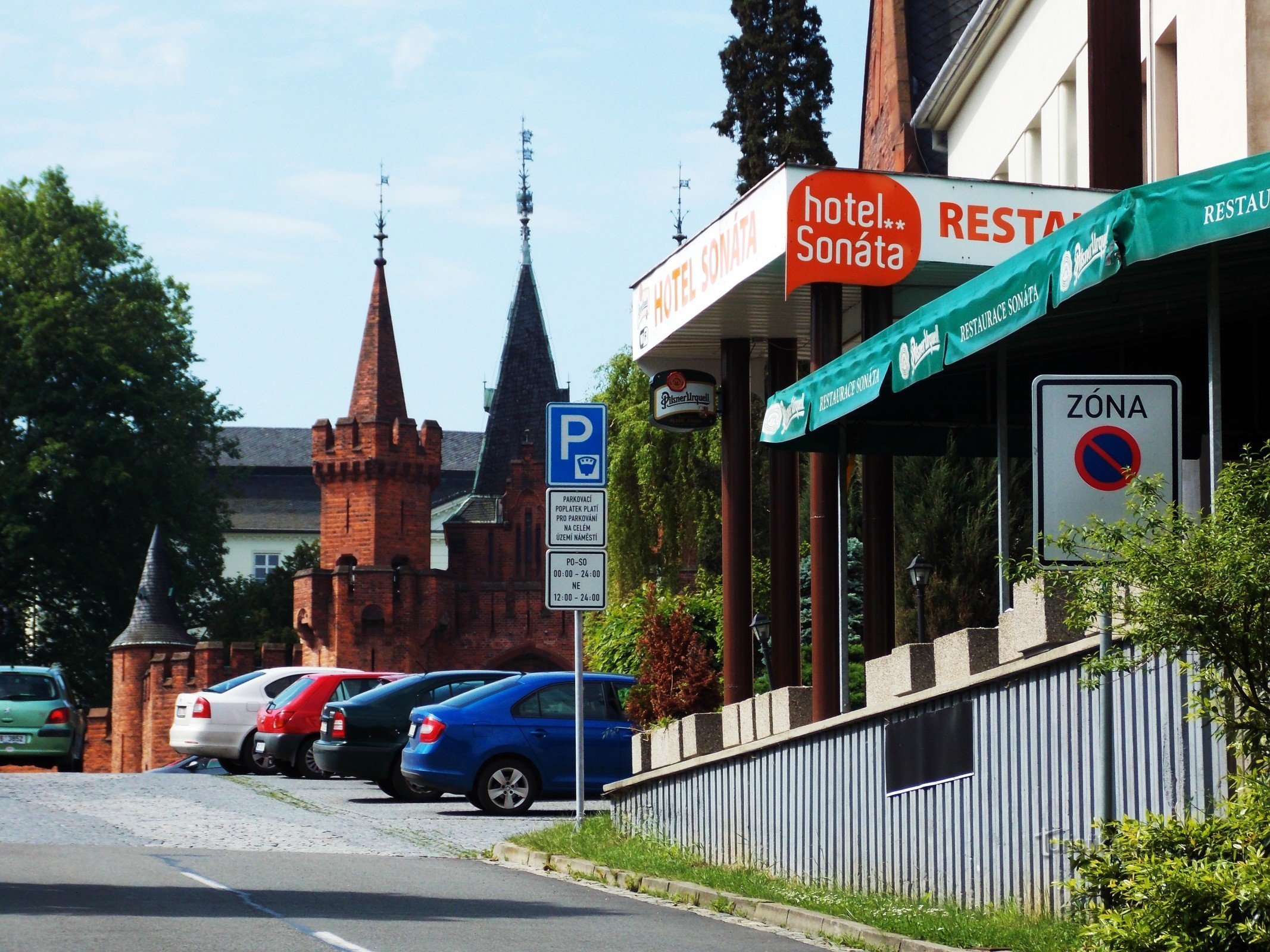 Procházíte - li směrem k areálu malebného hradeckého zámku z centra Hradce Zámeckou ulicí po modré značce, po pravé straně stojí budova - hotel Sonáta. Nabízí zde ubytování s možností stravování v restauraci s českou kuchyní v přízemí hotelu. K dispozici je venkovní terasa, možnost využití venkovního krytého bazénu, umožní vám také pořádání svateb oslav, školení, atd., parkovat lze za hotelem…