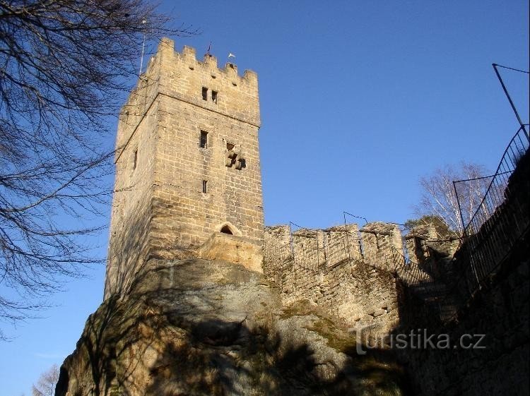 Rozsáhlé torzo hradu ležícího na pískovcovém bloku 3 km od Úštěka. Dominuje mu třípatrová věž, později upravená v romantickém stylu. Pro hrad se užívá také název Helfenburk. Původní, rozlohou velmi malý, hrad zde vybudoval Jan z Klinštejna, příslušník rozlehlého rodu Ronovců, kteří zdejší kraj získali do lenního vlastnictví od Jana Lucemburského.