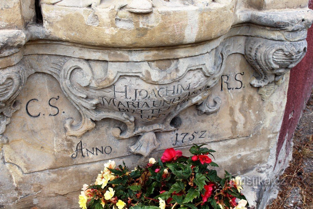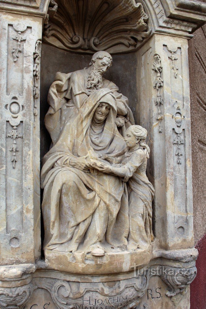 Hrob, sousoší sv. Jáchyma sv. Anny a Panny Marie.