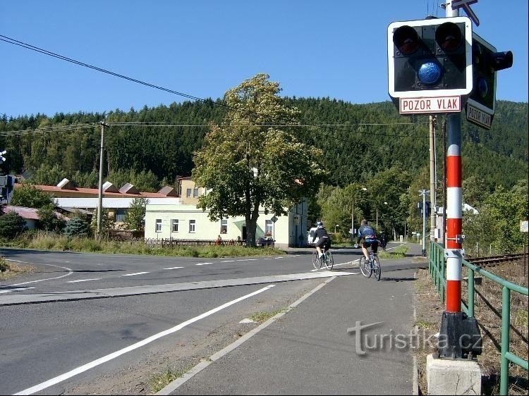 Rozcestník u stanice ČD v Hroznětíně.
