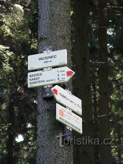 Husinec je rozcestí a orientační místo na červené turistické značce, po které se můžeme vydat z obce Pražmo na Ivančenu a odtud dále po modré Na Lysou horu ( 1323 m.n.m.). Rozcestník se nachází asi tři kilometry jihozápadně od osady Pražmo na křižovatce lesních cest a na okraji lesa. Z rozcestí budeme dále stoupat po úzké lesní cestě a oblastí pěkného lesa. Z okraje lesa nedaleko rozcestí je…