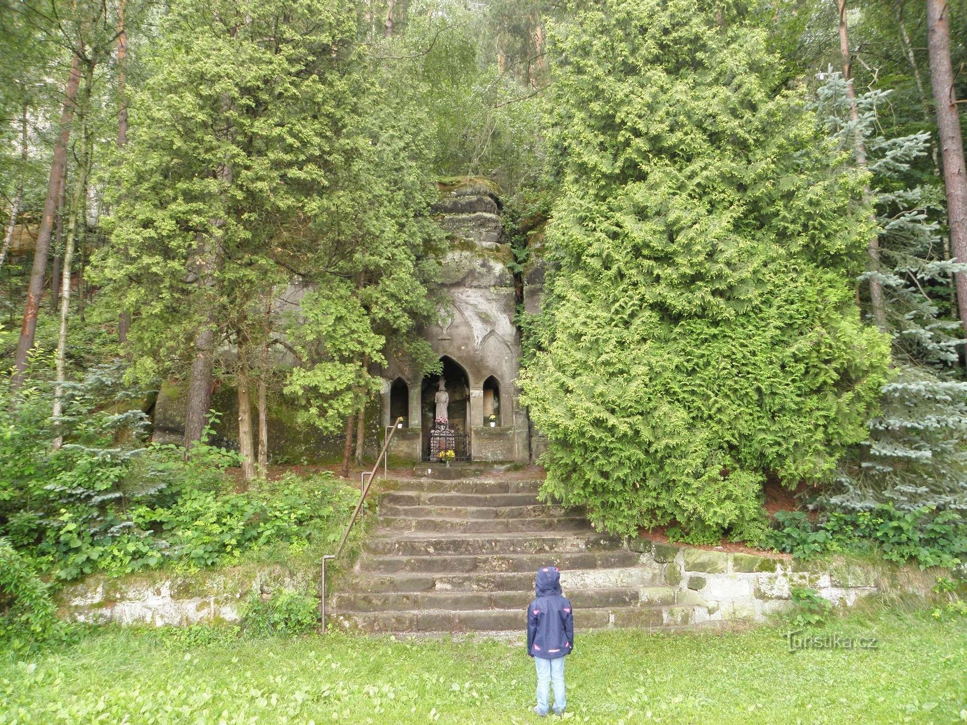 Podle původních plánů zde měla být zbudována Skalní kaple, ale práce nepokračovala tak, jak by si místní nadšenci představovali. Plány byly proto pozměněny a byla vylámána pouze mělčí prostřední místnost, ve které na středu zůstal pevný sloup…