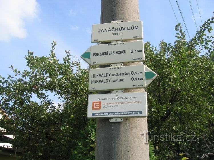Janáčkův dům je rozcestí a orientační místo na zelené turistické značce asi půl kilometru od náměstí v Hukvaldech. Rozcestník je v blízkosti rodného domu skladatele Leoše Janáčka, ze kterého byl vybudován památník. Výchozí bod zelené turistické značky, která prochází tímto rozcestím je u barokního kostela svatého Maxmiliána a odtud pokračuje kolem Janáčkova domu severovýchodním směrem na rozcestí…