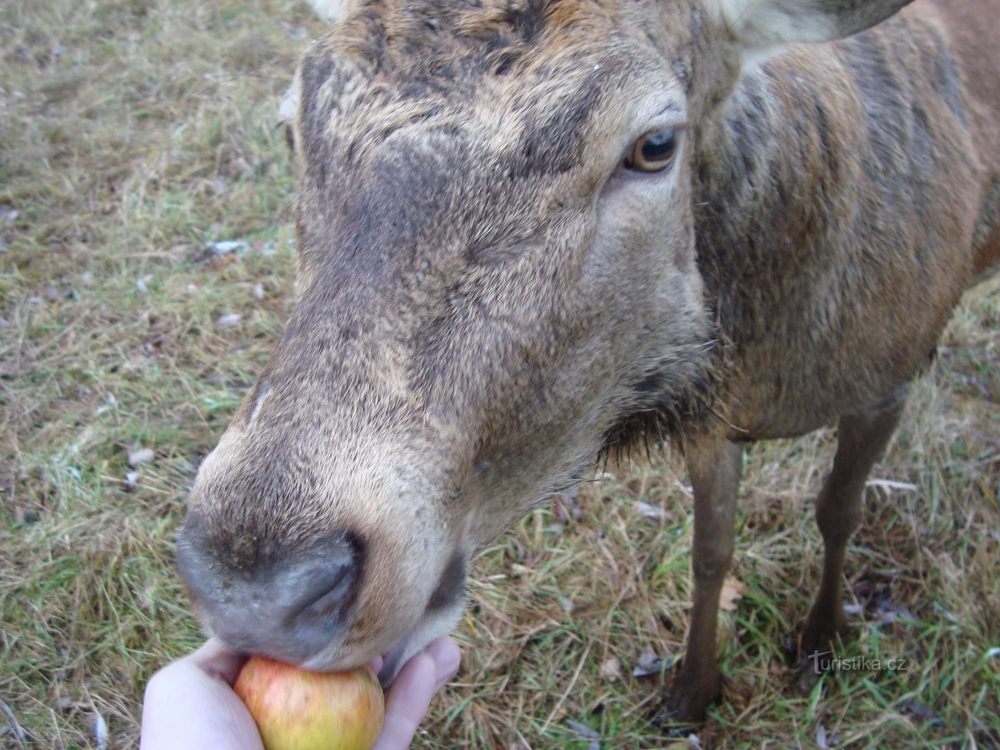 Dozvěděli jsme se o jelení oboře v obci Hory. Byl podzim 2015, jsem právě měsíc z nemocnice, tak jsem začal výlety velmi pozvolně. Jelení obora v obci Hory nedaleko Karlových Varů. Byli jsme 20 km od domova, takže nic jsme nepotřebovali. Jelení obora byla super. Zvířata hned jak nás uviděla, tak naběhli. Byla zvyklá a moc jim chutnalo. Na pořadu dne byly jablka a tvrdé pečivo. Byl to moc fajn…