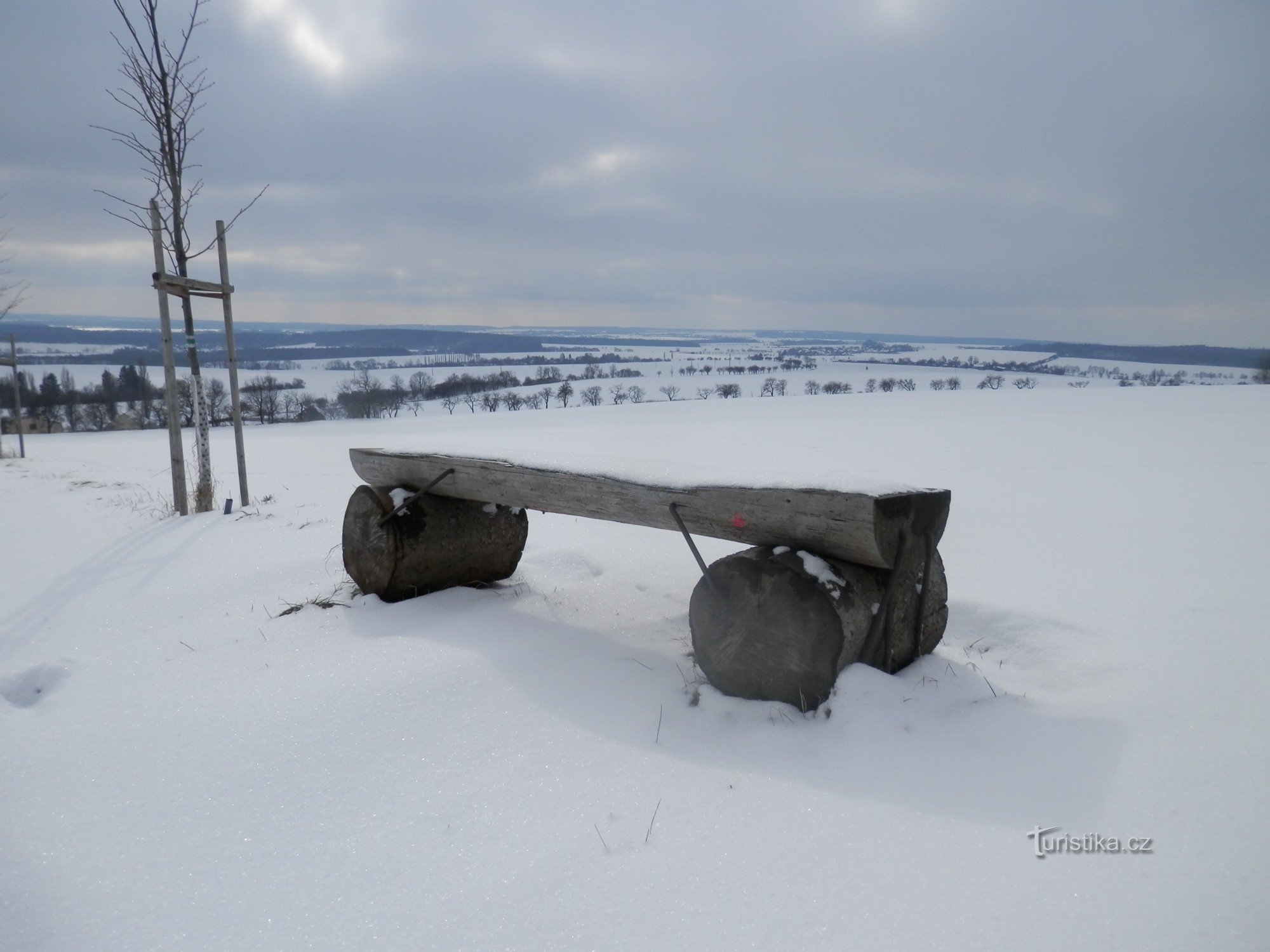 U kostelíčka necháme auto a pokračujeme pěšky po hlavní silnici. Asi po 150 m odbočíme mezi domy do leva. Polní cestou pokračujeme mírným stoupáním k vrcholu. Čeká nás veliké překvapení. Snoubí se tu…