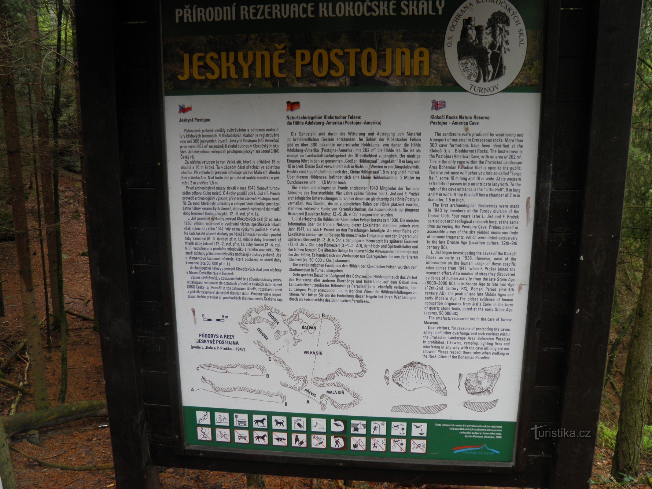 Jeskyně Postojna, známá také pod názvem Amerika, se nachází v přírodní rezervaci Klokočské skály v Zeleném dole. Velmi úzký vchod vede do jedné z nejrozlehlejších jeskyní Českého ráje (16x18 m). Z jeskyně odbočují další chodby, které se postupně zužují.